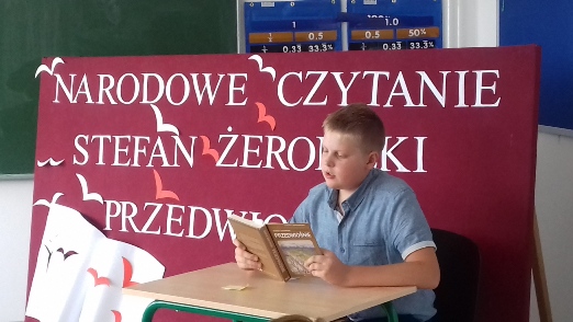 Dzisiaj w naszej szkole odbyło się Narodowe Czytanie powieści Stefana Żeromskiego "Przedwiośnie". Z zaproszenia Samorządu Uczniowskiego skorzystała radna wsi Pasieki - Pani Ewa Mikuła i wraz ze społecznością szkolną odczytała fragment powieści. Czytali zarówno uczniowie, jak i nauczyciele. Spotkanie otworzyła Pani Dyrektor Ewa Probola i jako pierwsza odczytała pierwsze karty powieści.