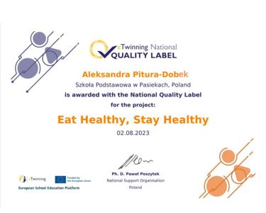 Projekt został nagrodzony Krajową Odznaką Jakości eTwinning.
