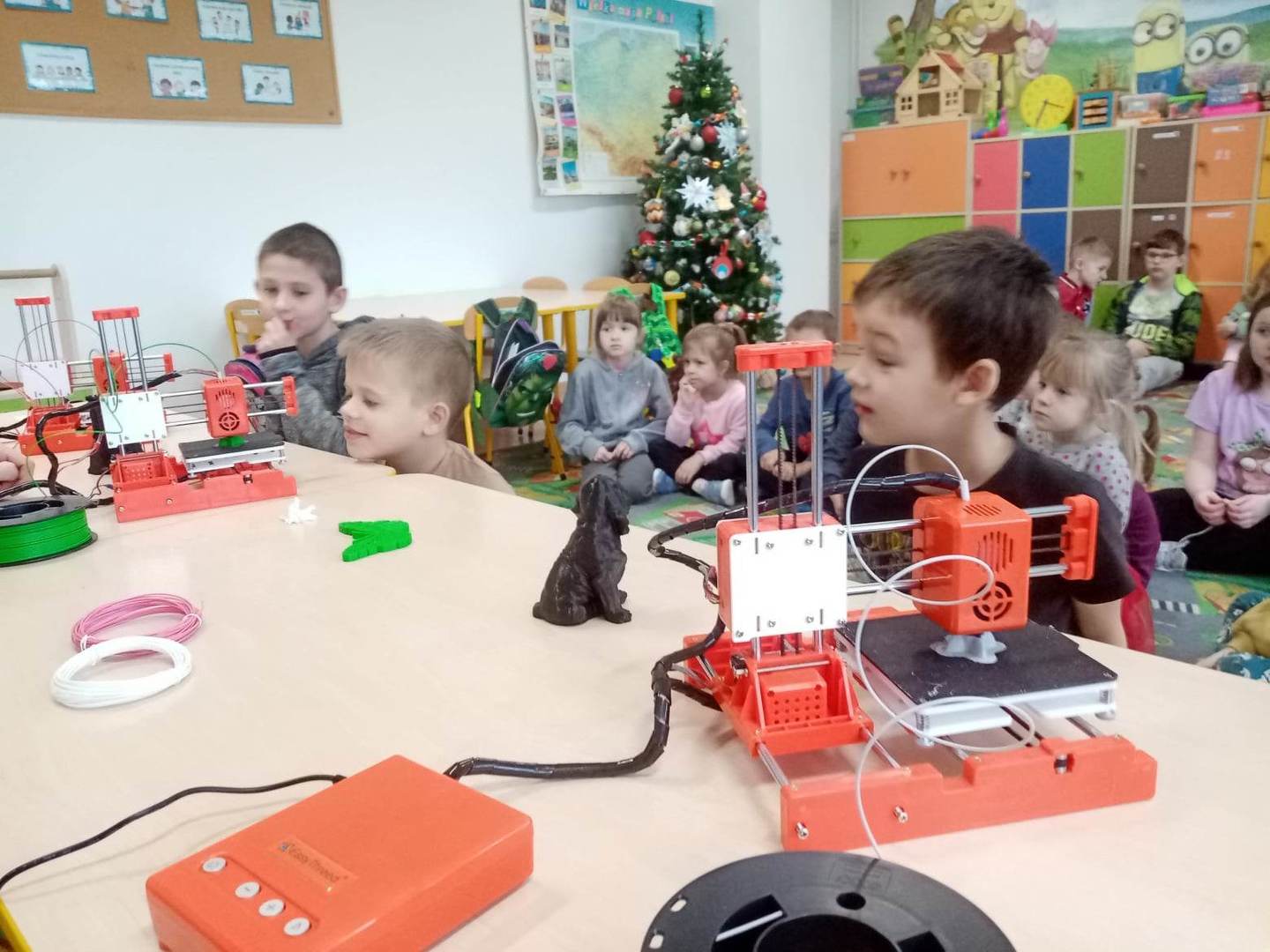 - Przeprowadzenie warsztatów dla uczniów kl. 1-5 i przedszkola przez edukatorów zewnętrznych. Udział w warsztatach stanowił inspirację do eksperymentowania nową technologią druku 3D. Prezentacja wykorzystania drukarki 3D do drukowania użytecznych przedmiotów miała na celu zapoznanie ze sposobem funkcjonowania i pracą z drukarkami 3D. Szkolenie zostało przeprowadzone dla nauczycieli i uczniów, uczestnicy otrzymali certyfikaty.