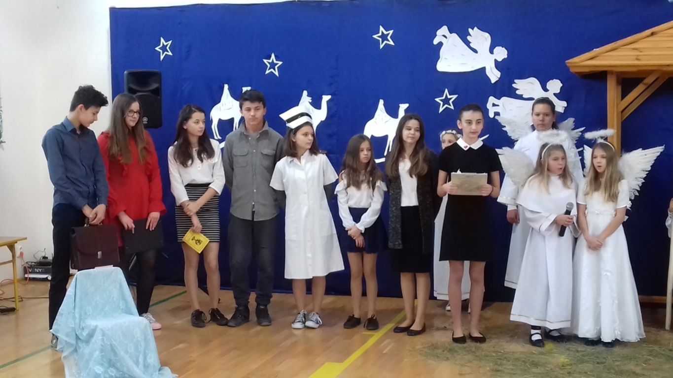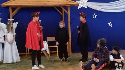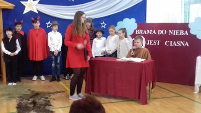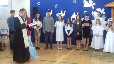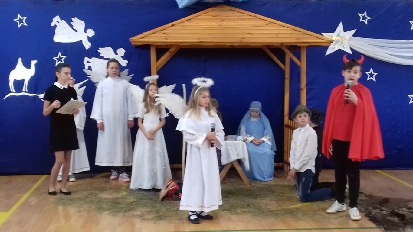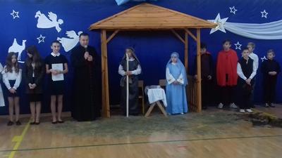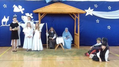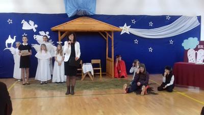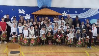 W piątek 21 grudnia w naszej szkole miało miejsce niezwykłe wydarzenie. Uczniowie pod opieką pani Elżbiety Korgi wystawili przepiękne jasełka, czyli historię o narodzeniu Jezusa Chrystusa. Część artystyczną poprzedziło wystąpienie pani Dyrektor Ewy Proboli, które powitała zgromadzonych gości i wprowadziła wszystkich w świąteczny klimat. Zaproszenie na jasełka przyjęli Ksiądz Dziekan Grzegorz Chabros oraz przedstawiciele Koła Łowieckiego nr 61 "Roztocze", którzy wcieliwszy się w role św. Mikołaja obdarowali naszych uczniów słodkimi paczkami. Dziękujemy za pamięć!