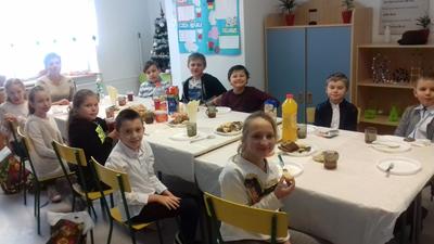 Następnie uczniowie wraz ze swoimi wychowawczyniami udali się do swoich klas w których odbyły się symboliczne wigilie.