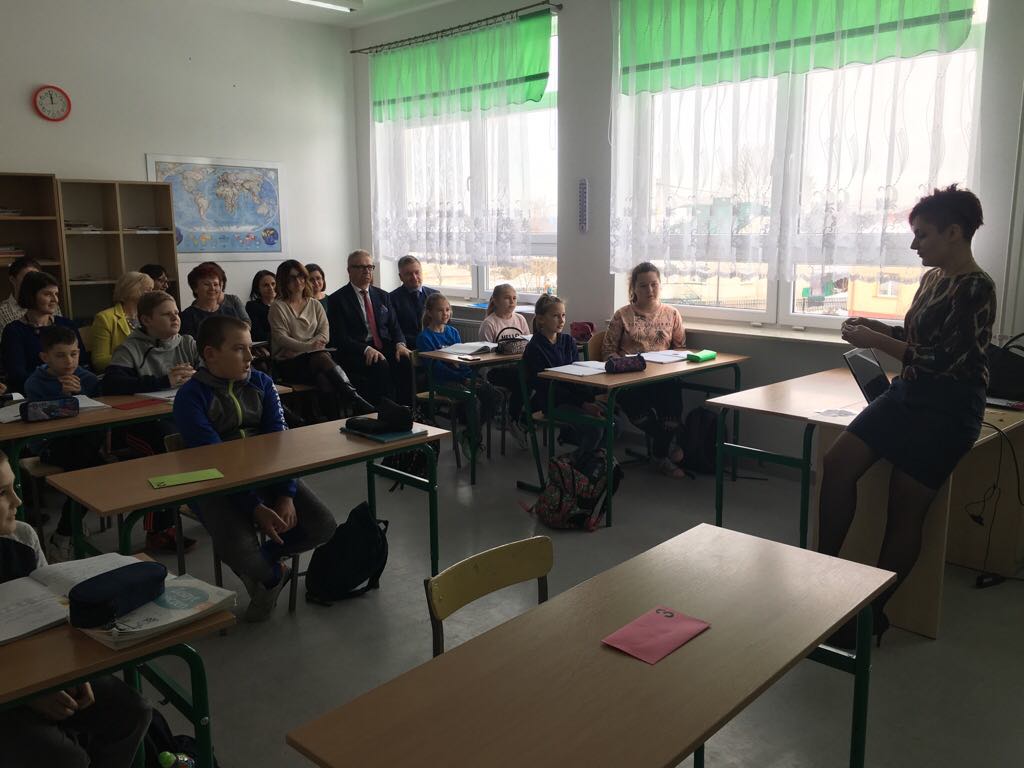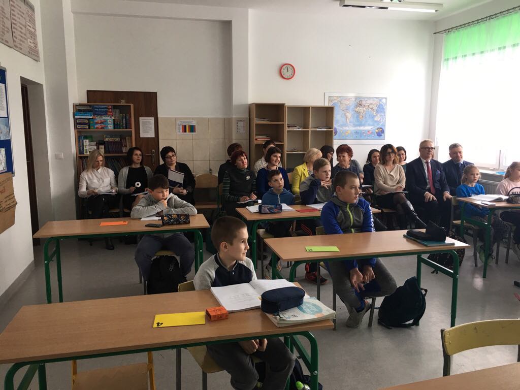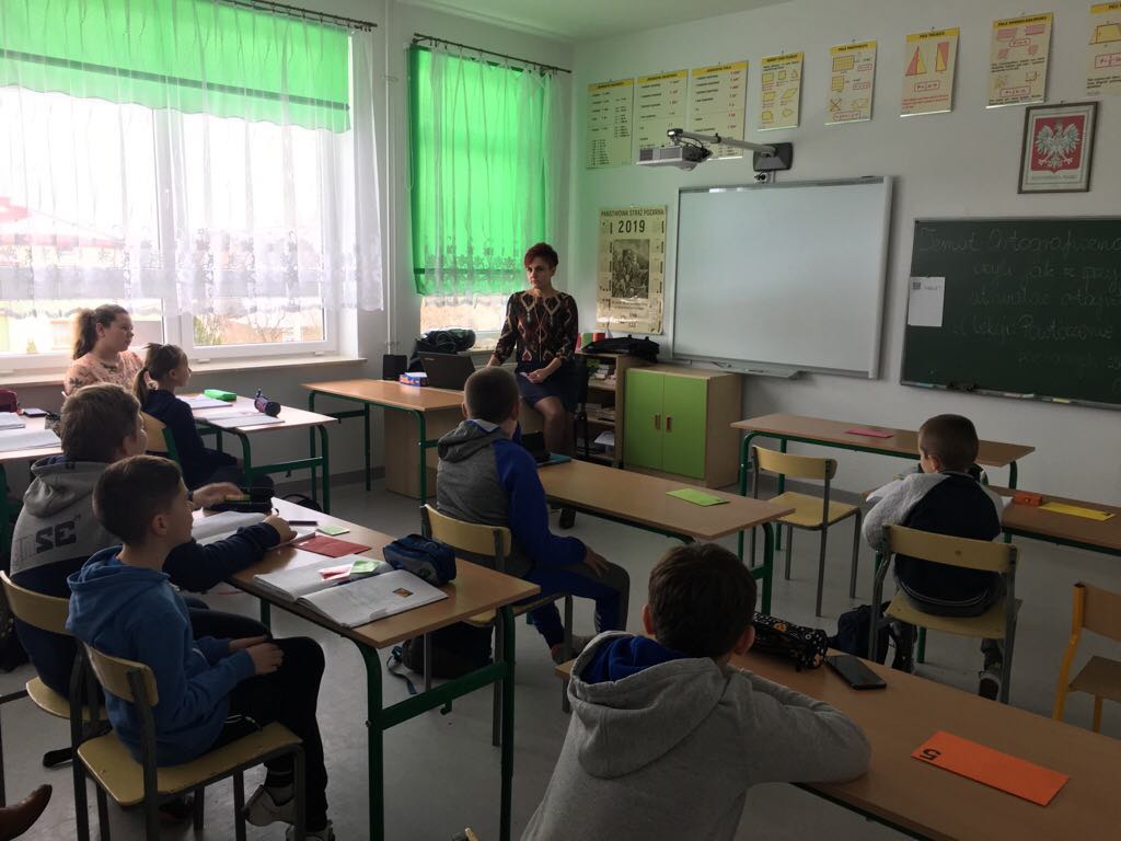 W dniu 28.01.2019r. do naszej szkoły zawitali niecodzienni goście. Byli to zaproszeni nauczyciele poloniści z terenu gminy i miasta Tomaszów Lubelski. Okazją do spotkania była lekcja otwarta języka polskiego, którą przeprowadziła pani Maria Dworzycka z uczniami klasy VI. Zajęcia miały charakter powtórzeniowy i utrwalający. Uczniowie wraz z nauczycielem pracowali metodą stacji zadaniowych, korzystali z kodów QR, kości "Story cubes", a rozwiązania poszczególnych stacji umieszczali na specjalnie do tej lekcji utworzonym padlecie. Ponieważ była to lekcja utrwalająca zasady ortograficzne nie mogło zabraknąć tak lubianego przez uczniów - dyktanda bieganego.