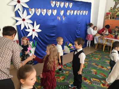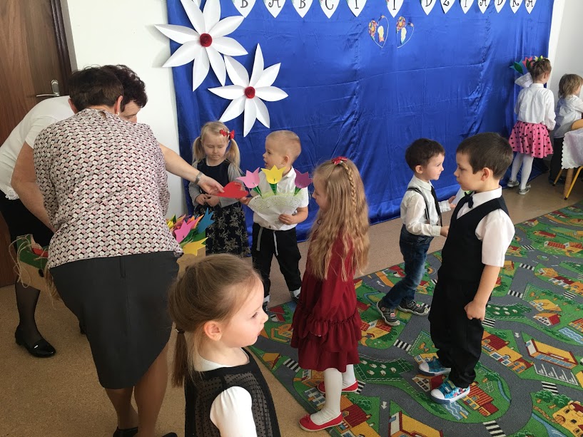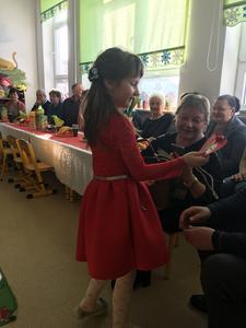 Na koniec przedszkolaki wręczyły własnoręcznie wykonane upominki, złożyły życzenia i zaprosiły na słodki poczęstunek.