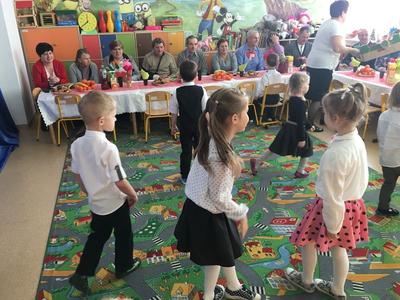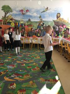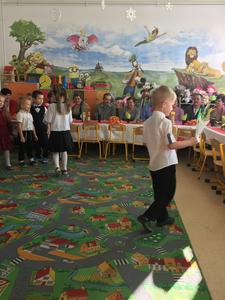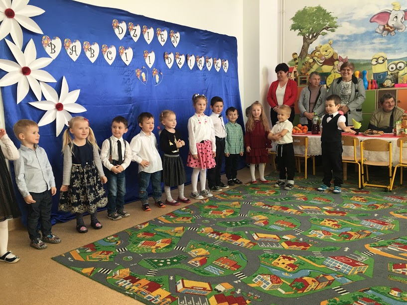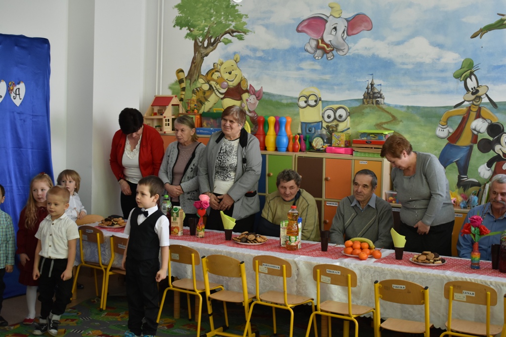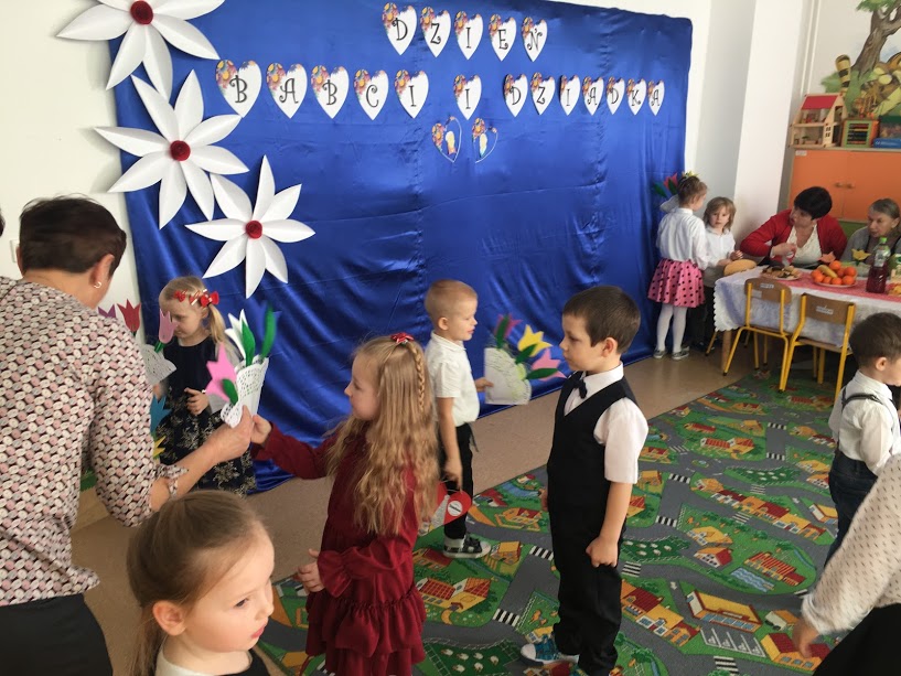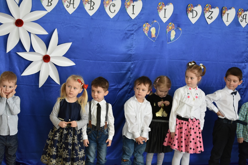Atrakcją była piosenka śpiewana przez przedszkolaków w rytm której raz babcia, raz dziadek musieli wykonać i naśladować odpowiednie ruchy pokazane przez dzieci.