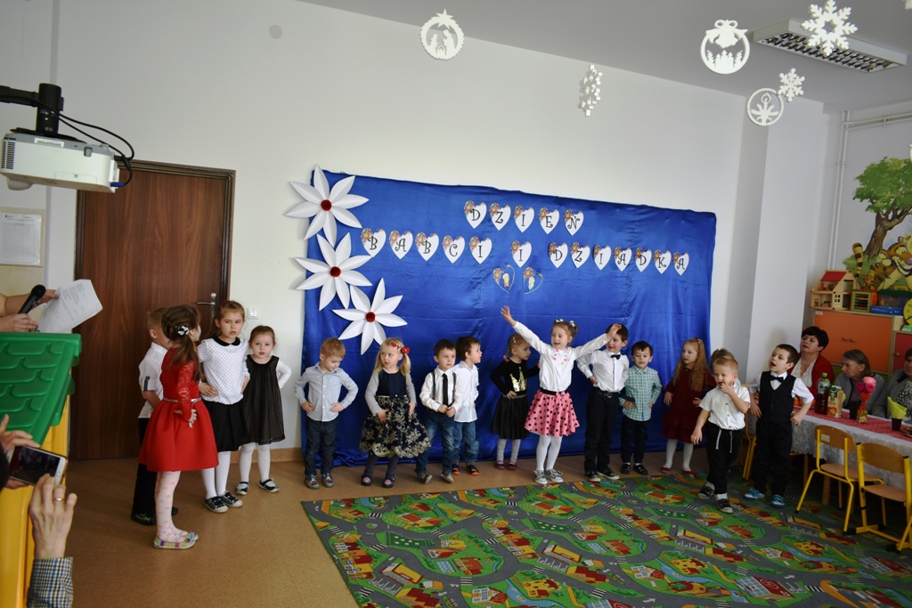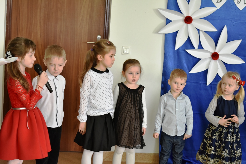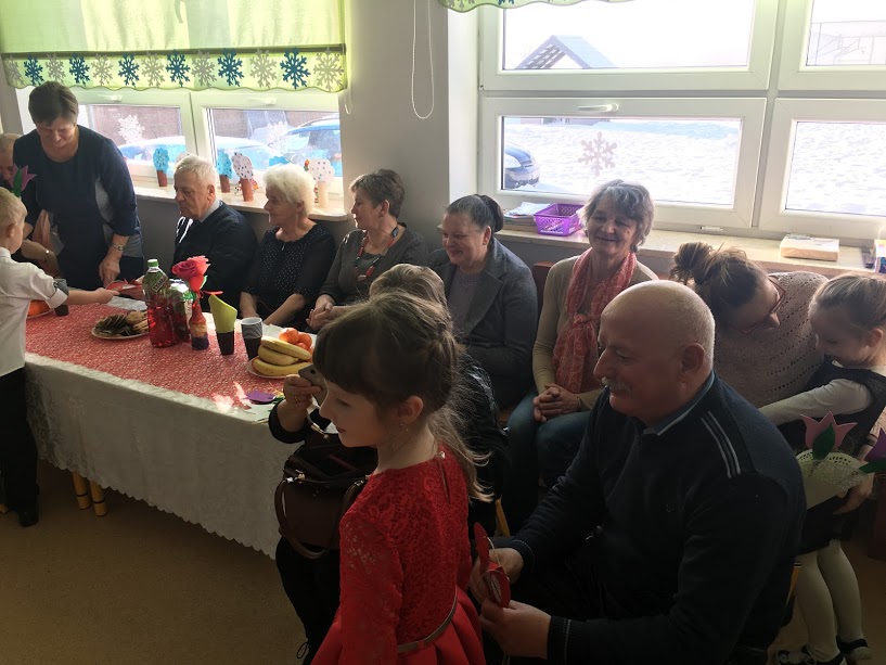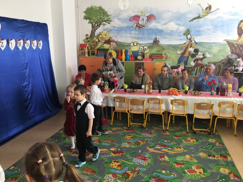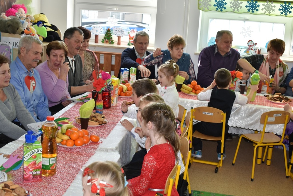 Dzieci pod nadzorem Pani Jolanty Grzesik przygotowały piękny występ. Były wierszyki, piosenki płynące z ust i serduszek najmłodszych wykonawców w podziękowaniu za trud, opiekę i miłość dla dziadków.