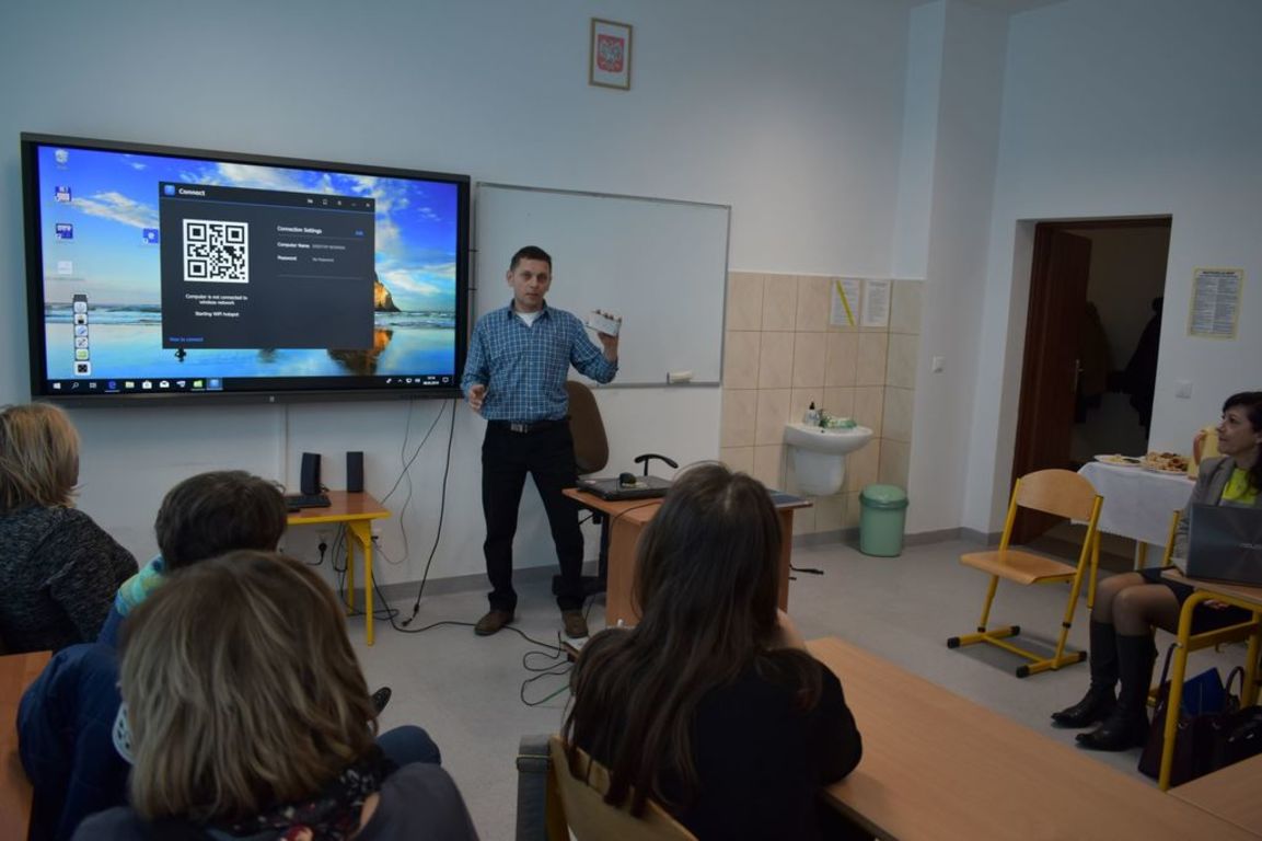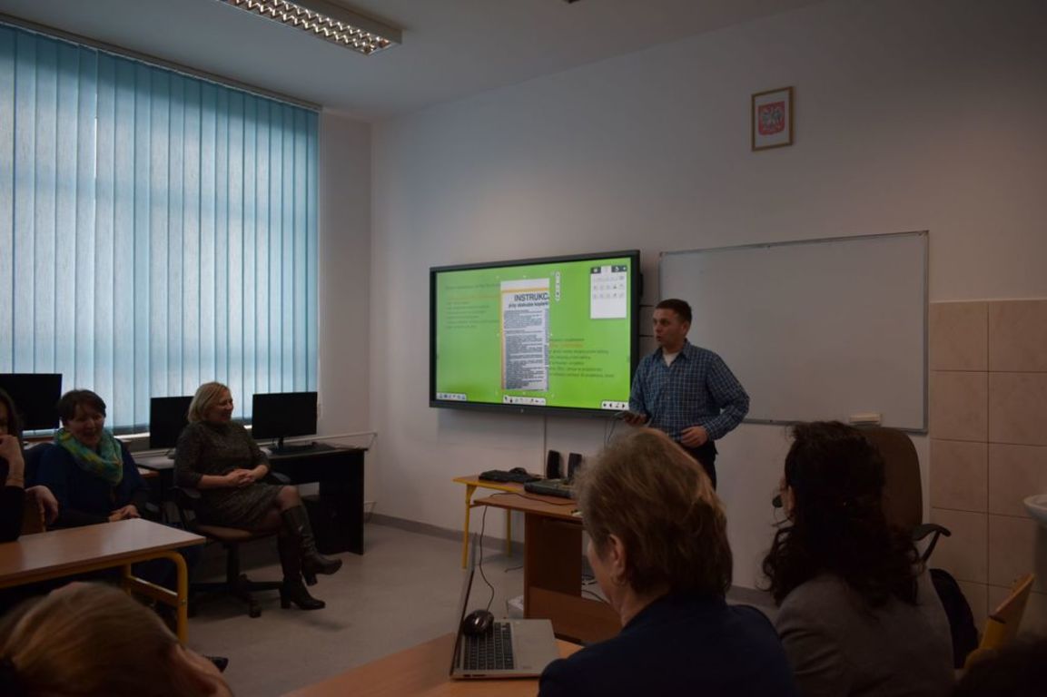 Dzisiaj w naszej placówce odbyło się szkolenie pt. „Wykorzystanie nowoczesnych technik multimedialnych na przykładzie monitora interaktywnego” w ramach międzyszkolnej sieci wymiany doświadczeń nauczycieli z 6 szkół Gminy Tomaszów Lubelski. Prezentację i techniczną obsługę monitora zaprezentował nasz informatyk Piotr Walczewski. Jasno i zrozumiale dla wszystkich przedstawił kilka przykładów praktycznego zastosowania monitora na lekcjach.