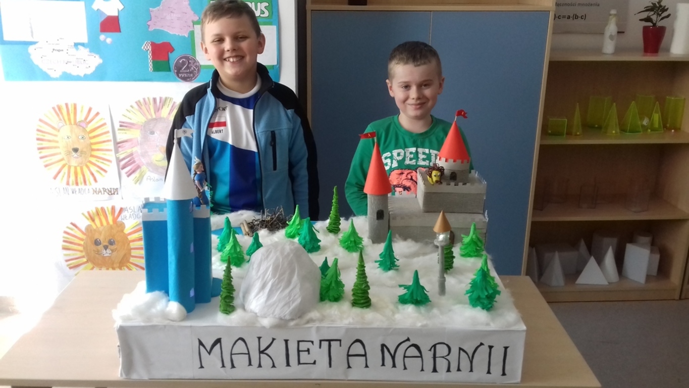 W ostatnich dniach uczniowie klasy IV i V omawiali lektury "Chłopcy z Placu Broni" oraz "Opowieści z Narnii. Lew, czarownica i stara szafa". W wyniku pracy nad tekstami literackimi pojawił się pomysł, by przedstawić fragmenty lektur w sposób przestrzenny. Tak powstały przepiękne makiety Narnii i Placu Broni. Dzieci włożyły mnóstwo trudu i energii, by wiernie przedstawić oba miejsca. Wykazały się również niezwykłą kreatywnością, czym bardzo pozytywnie mnie zaskoczyły.