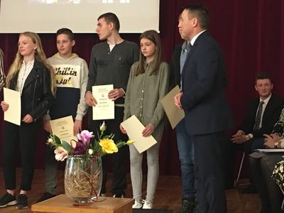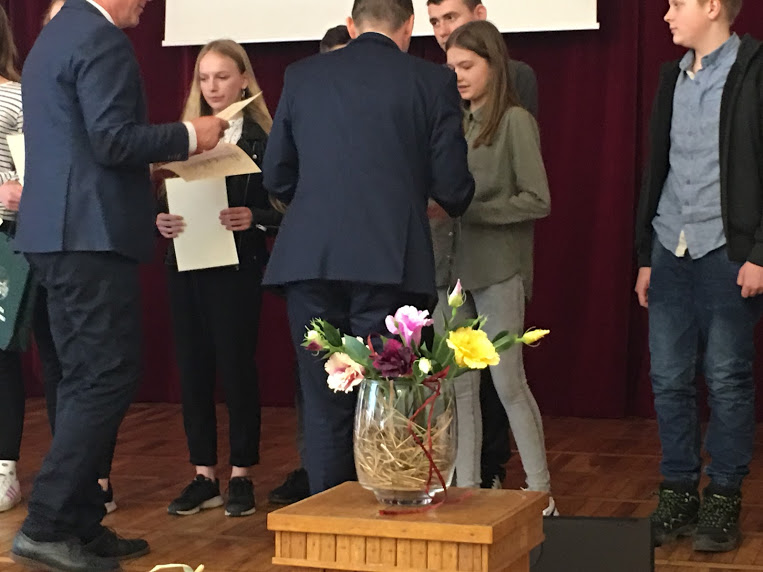 Podczas tejże uroczystości wicestarosta wręczał licealistom stypendia motywacyjne za wysoką średnią w nauce. Wśród nich znalazły się też nasze absolwentki z Pasiek: Kinga i Wiktoria D. Myślę, że to świadczy bardzo dobrze o naszej szkole, która dała mocne fundamenty i dobre przygotowanie oraz zaszczepiła motywację do nauki. Jesteśmy z takich uczniów dumni.