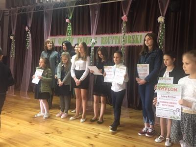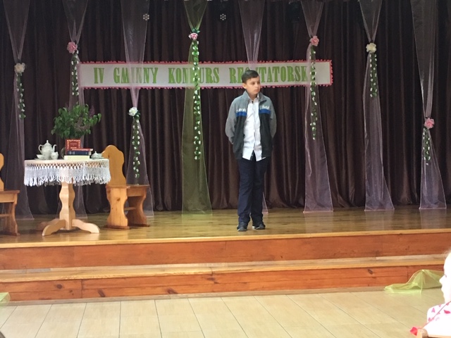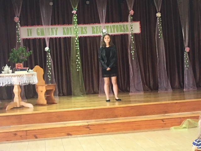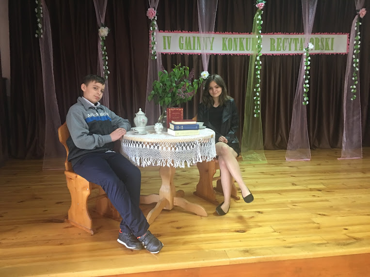 Dnia 09.05.2019r.w Gminnym Ośrodku Kultury w Podhorcach odbył się konkurs recytatorski. Naszą szkołę reprezentowali: Gabriela Pliszka uczennica klasy VIII i Patryk Tryndoch uczeń klasy V.
