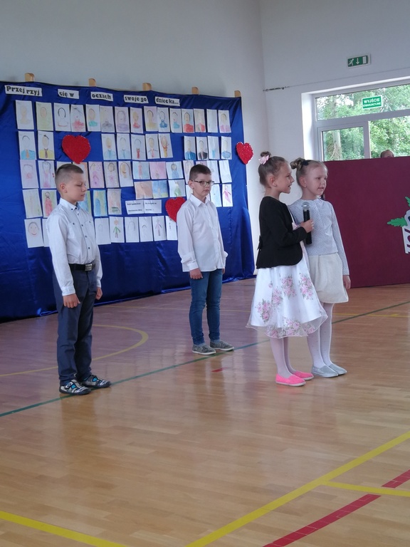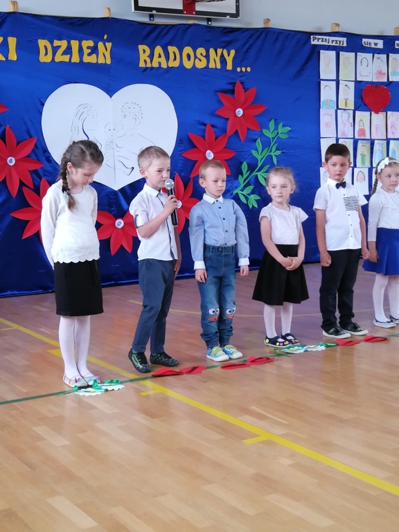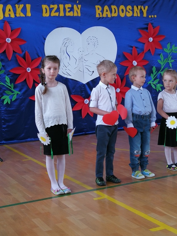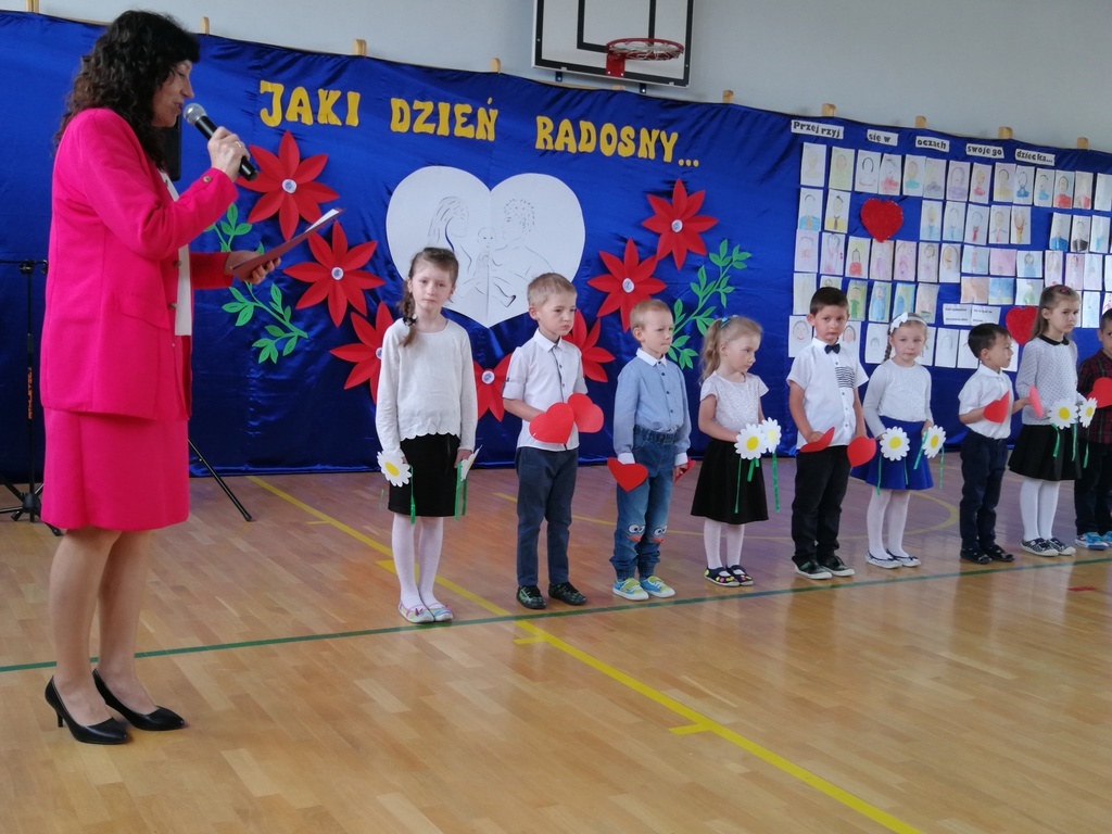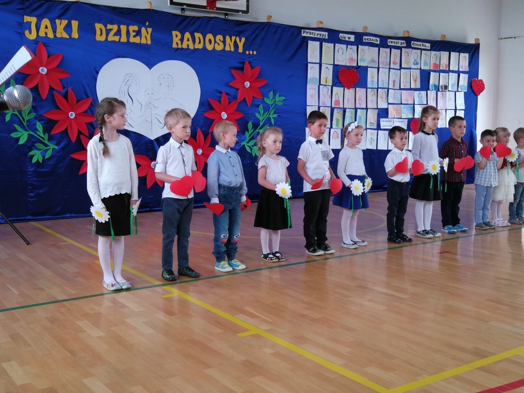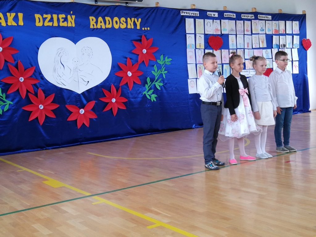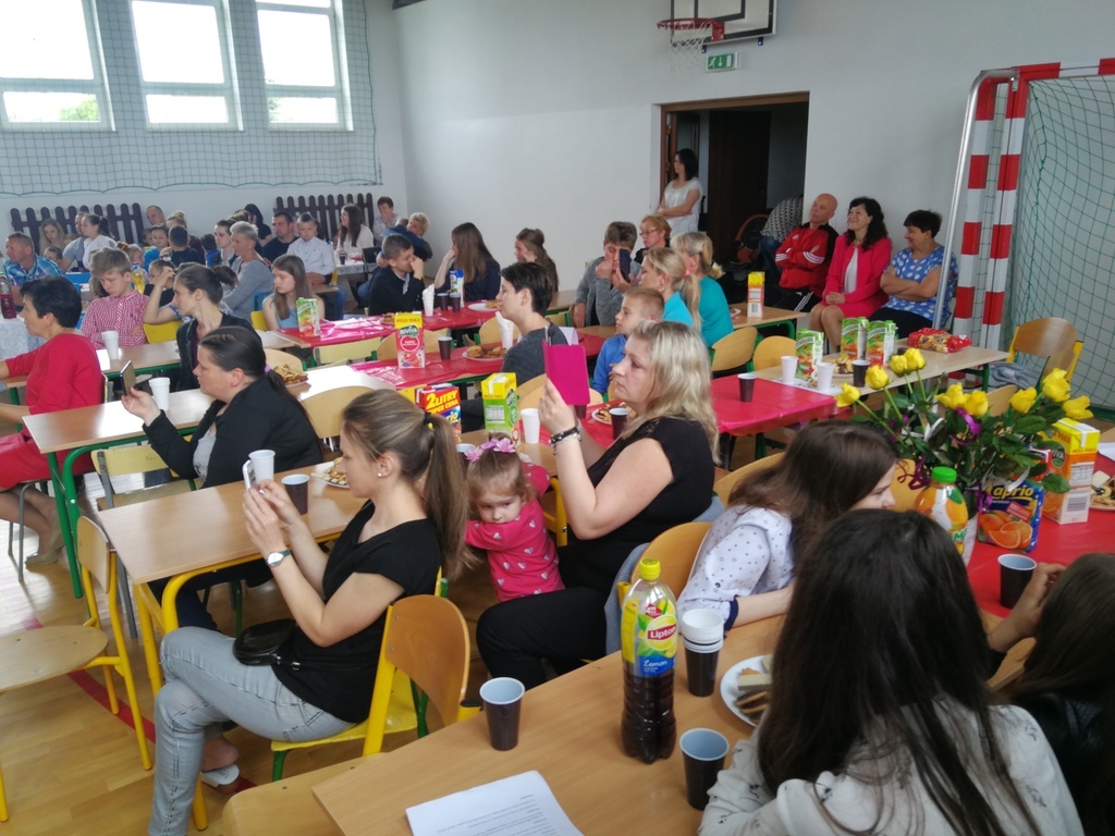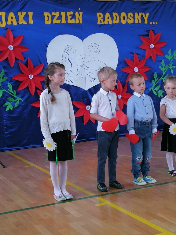 Po przywitaniu gości przez Panią Dyrektor, w podziękowaniu za miłość i poświęcenie, uczniowie zaprezentowali rodzicom i opiekunom okolicznościową część artystyczną. Wielu emocji i wzruszeń dostarczyła rodzicom wystawa prac plastycznych pt. ,,Moja Rodzina” i własnoręcznie przygotowane przez uczniów upominki. Tradycyjnym prezentem dla rodziców (i dzieci) był słodki poczęstunek, po którym przyszedł czas na rodzinne zabawy i rekreację na placu szkolnym. Wśród atrakcji były warsztaty robienia biżuterii, malowanie twarzy, lody oraz cieszące się dużym powodzeniem zabawy integracyjne i konkurencje z przyborami.