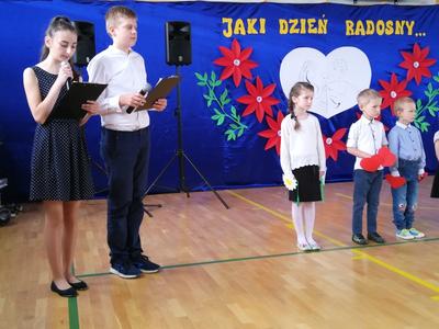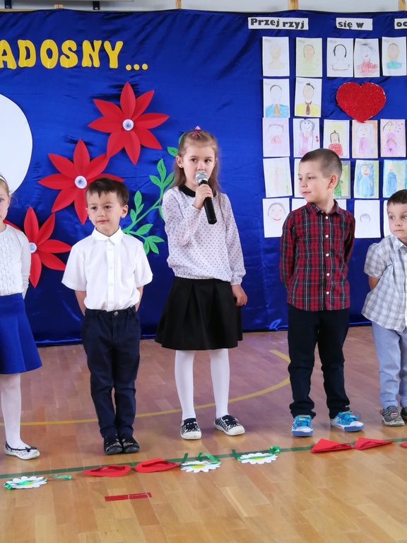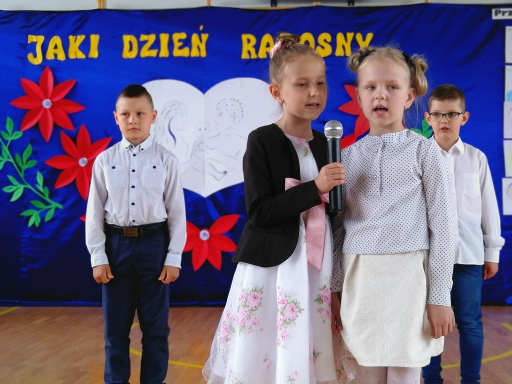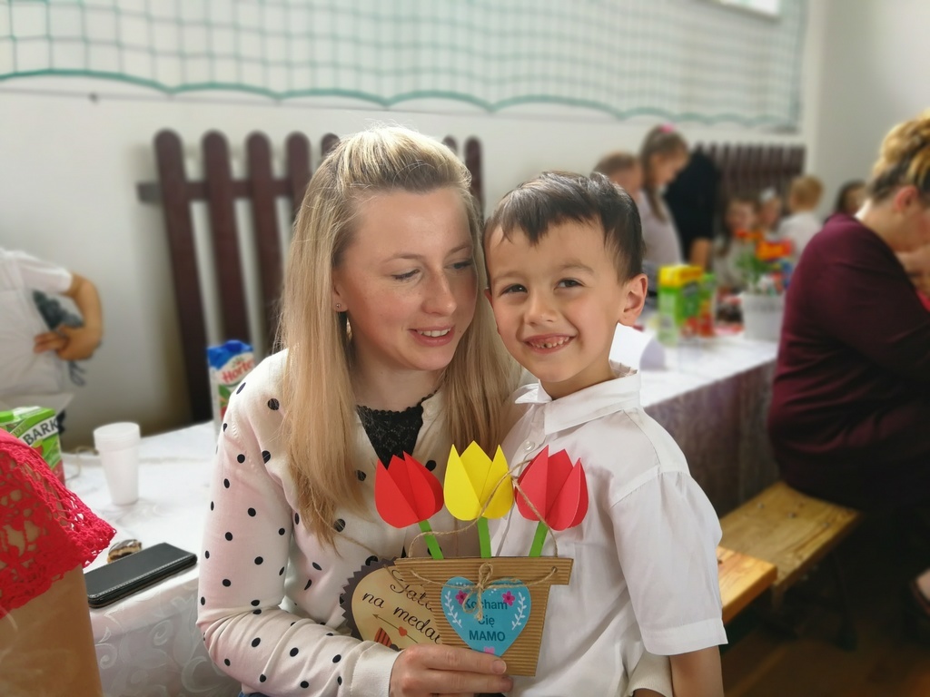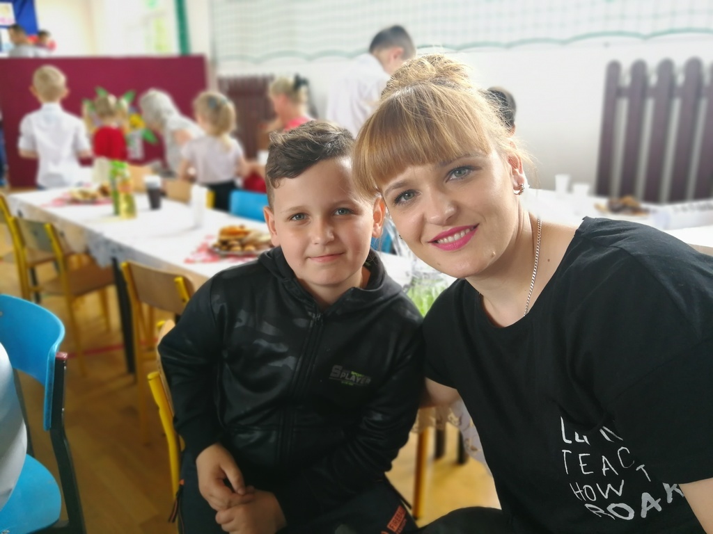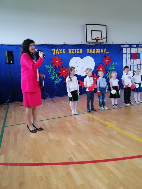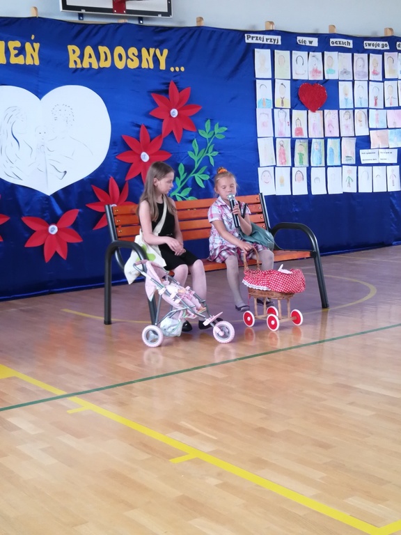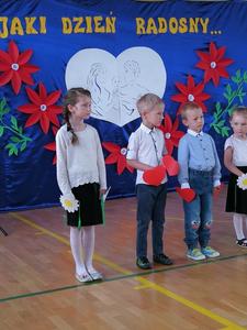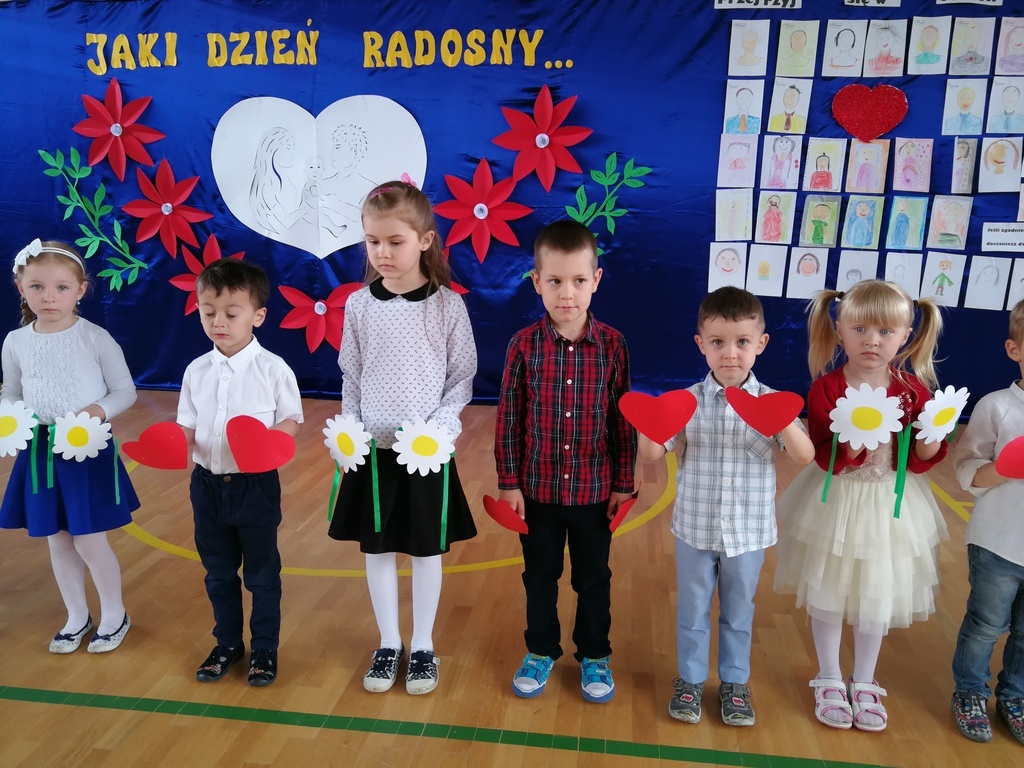 Po przywitaniu gości przez Panią Dyrektor, w podziękowaniu za miłość i poświęcenie, uczniowie zaprezentowali rodzicom i opiekunom okolicznościową część artystyczną. Wielu emocji i wzruszeń dostarczyła rodzicom wystawa prac plastycznych pt. ,,Moja Rodzina” i własnoręcznie przygotowane przez uczniów upominki. Tradycyjnym prezentem dla rodziców (i dzieci) był słodki poczęstunek, po którym przyszedł czas na rodzinne zabawy i rekreację na placu szkolnym. Wśród atrakcji były warsztaty robienia biżuterii, malowanie twarzy, lody oraz cieszące się dużym powodzeniem zabawy integracyjne i konkurencje z przyborami.
