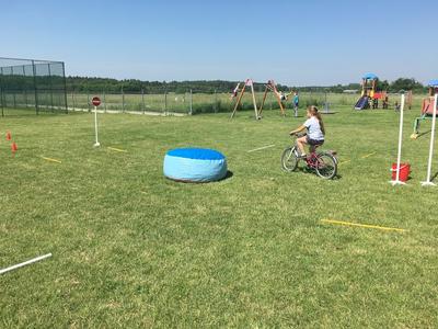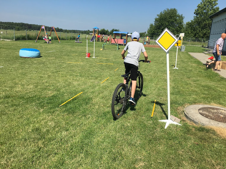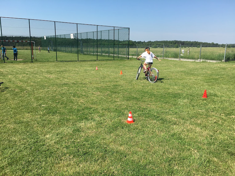 Dziś klasa IV zaliczyła egzamin praktyczny na kartę rowerową. Wszyscy przyjechali swoimi sprawnymi rowerami i po jednej jeździe próbnej od pierwszego razu przejechali wyznaczoną trasę bez pomyłek . Na koniec pokonali bezbłędnie slalom.