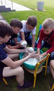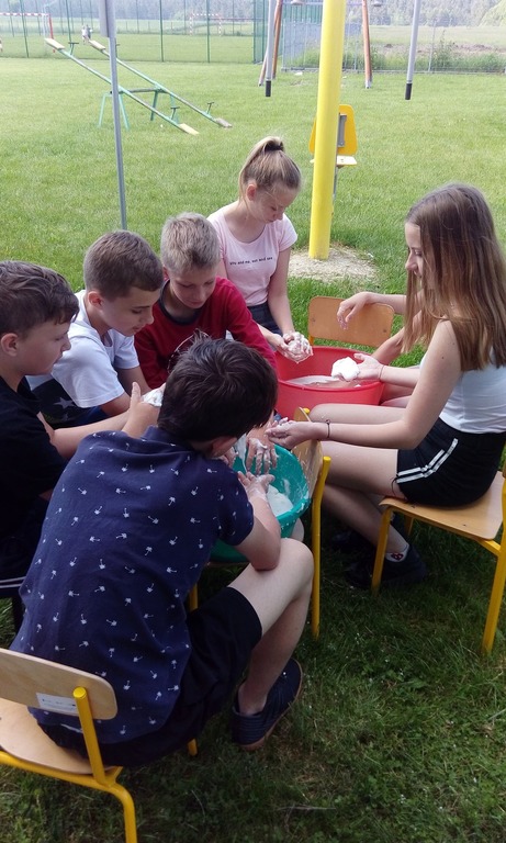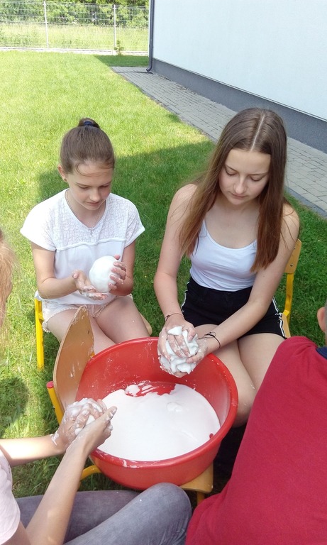 Dnia 6 czerwca uczniowie klasy VII i VIII uczyli się fizyki przez zabawę. Poznawali i badali zachowanie się cieczy nieniutonowskiej. Każdy miał okazję na własnej skórze przekonać się, kiedy substancja zachowuje się jak ciecz, a kiedy jak ciało stałe. Lekcję przygotowała pani Anna Sidor.