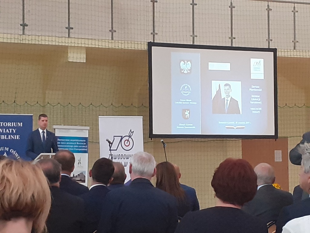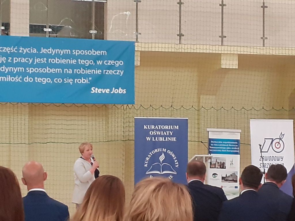 20 września 2019 uczniowie klasy VII i VIII wzięli udział w przedsięwzięciu „Zawodowy strzał w 10!- wybierz swoją przyszłość” zorganizowanym przez Lubelskiego Kuratora Oświaty we współpracy ze Starostą Tomaszowskim. Wyjazd ten miał na celu pomoc uczniom w świadomym wyborze dalszej drogi edukacyjnej i zawodowej. Podczas prezentacji zawodów uczniowie mieli okazje zapoznać się z zawodami zgodnymi z potrzebami lokalnego rynku pracy. Równolegle odbyła się konferencja dla doradców zawodowych, dyrektorów i rodziców prowadzona przez panią Teresę Misiuk Lubelskiego Kuratora Oświaty i Pana Ministra Edukacji Narodowej Dariusza Piontkowskiego.