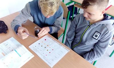 Niezwykła lekcja chemii "Uczenie przez doświadczenie" tak klasa VIII badała dziś skalę pH. Pomysł zaczerpnięto od ekspertów IBSE z "Palety natury". Lekcję przeprowadziła pani Anna Sidor. Zdjęcia Zobacz również Dzień Kropki Ogólnopolski Dzień Głośnego Czytania Warsztaty z psychologiem Niezwykła lekcja chemii "Legiony" Kiermasz jesienny 10 października 2019 Aktualności Wydrukuj Udostępnij Wyświetlono: 293