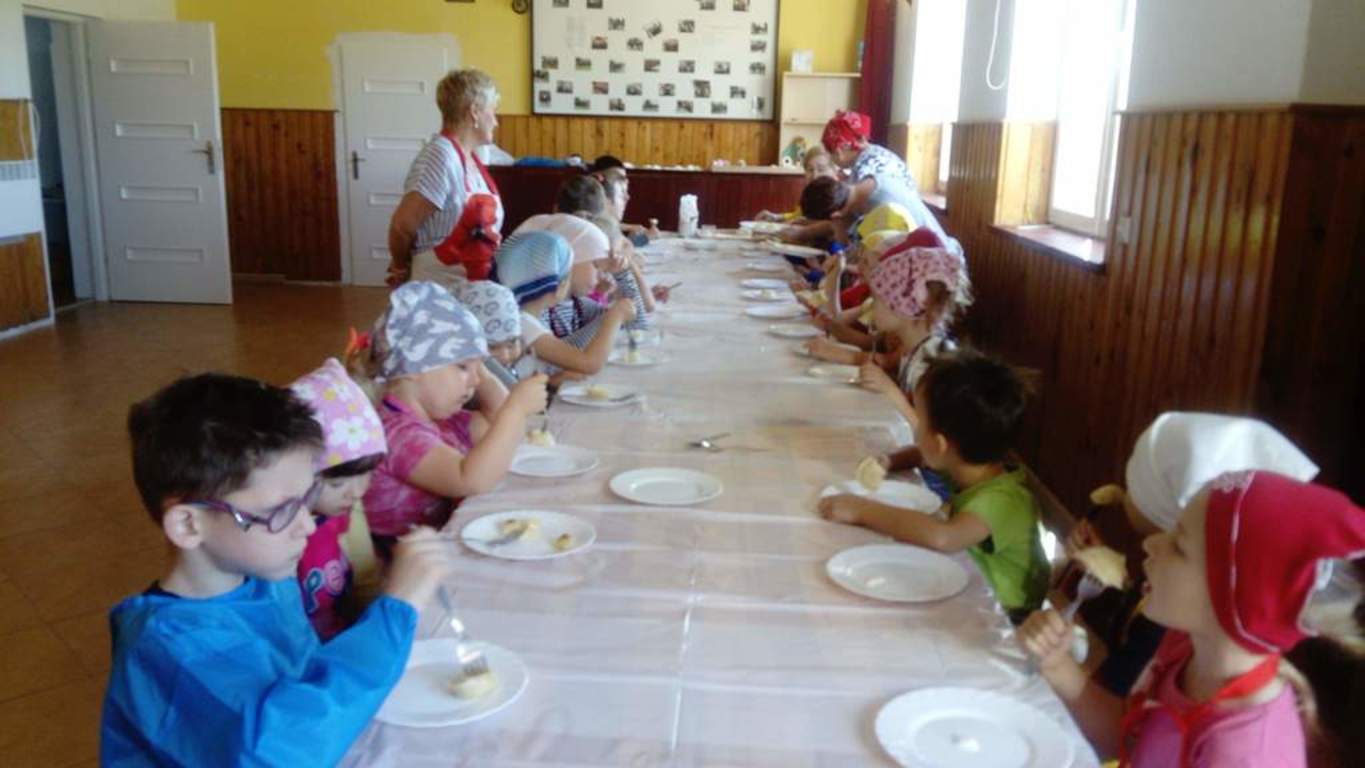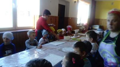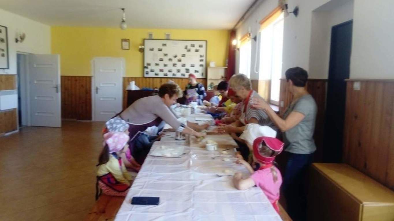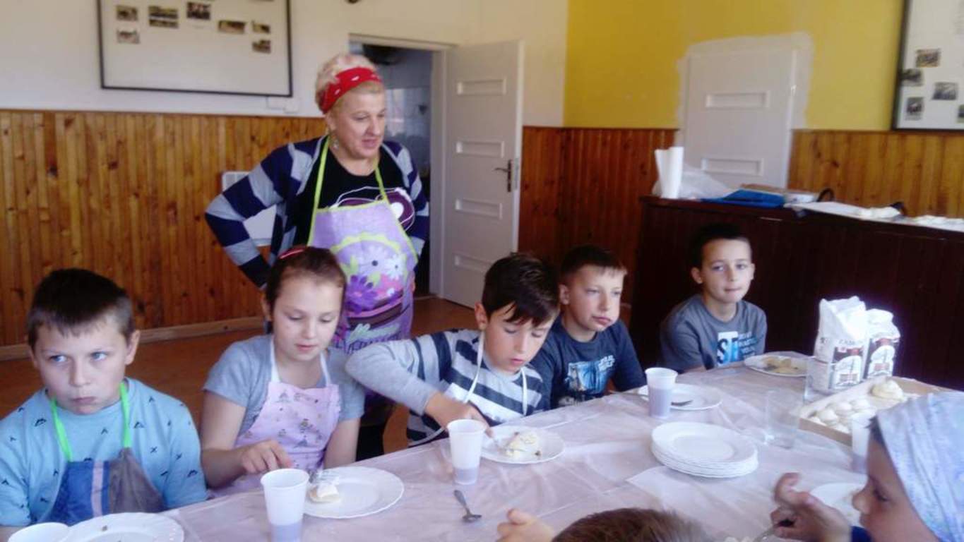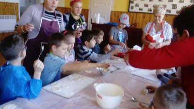 17 października najmłodsze dzieci z klas I-III i Oddziału Przedszkolnego miały przyjemność uczestniczyć pod okiem doświadczonych gospodyn z KGW w Pasiekach w warsztatach kuchni polskiej podczas których uczyły sie lepić pierogi - najpopularniejsze polskie danie.Głównym założeniem warsztatow była doskonała zabawa podczas wspólnego lepienia pierogow. W trakcie zajęć mielismy okazję, aby przyswoić zarówno techniczny jak i praktyczny aspekt przygotowania ciasta, gotowania i przyrządzania idealnego farszu. Warsztaty zakończył pierogowa biesiada, podczas której próbowaliśmy własnoręcznie przyrządzonych pierogów. Serdecznie dziękujemy paniom z KGW Pasieki na czele z przewodniczącą Panią Ewą Mikułą za bardzo ciekawe warsztaty kulinarne oraz wspaniałe doznania smakowe.