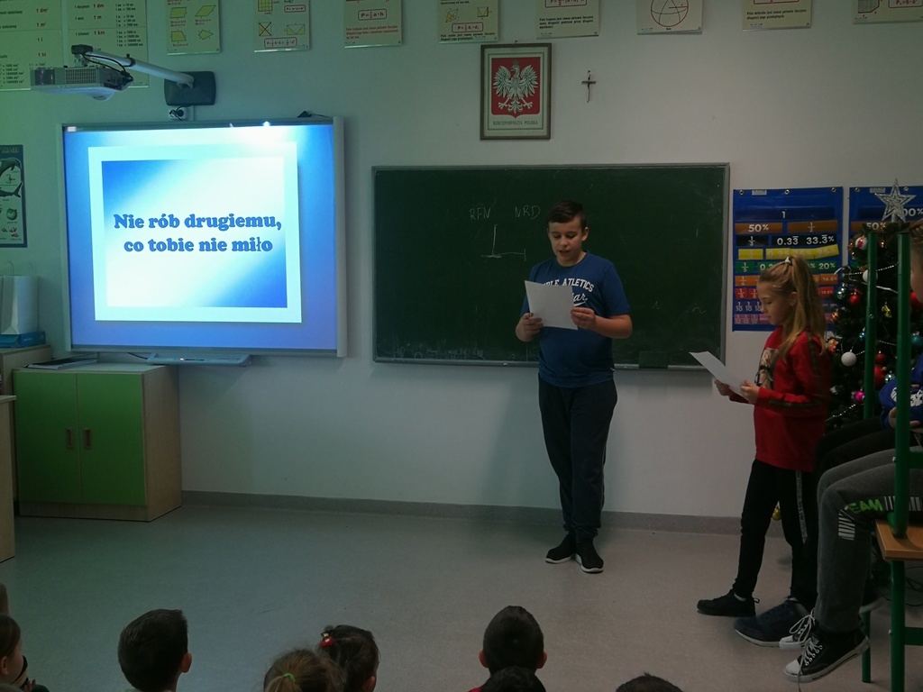 Aby tegoroczne ferie upłynęły wszystkim w spokoju, pani Anna Gozdek wraz z grupą uczniów zorganizowała apel dotyczący bezpiecznego wypoczynku. Uczniowie udzielili swoim kolegom i koleżankom bezcennych rad, by czas wolny od zajęć szkolnych był również okresem błogiego i bezpiecznego odpoczynku.