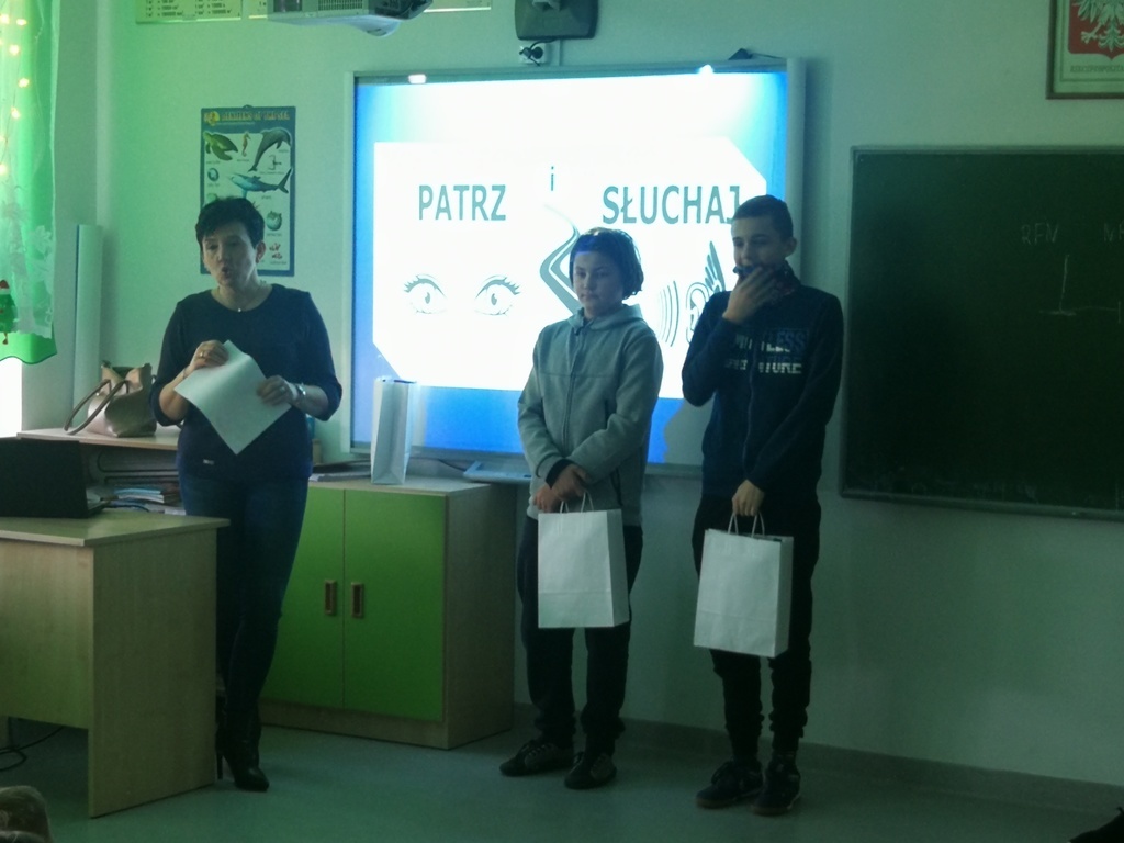 Apel był również okazją do wręczenia upominków osobom, które ofiarowały największą ilość groszy w ramach akcji "Góra grosza", której organizatorem był Samorząd Uczniowski pod opieką pani Anny Gozdek.