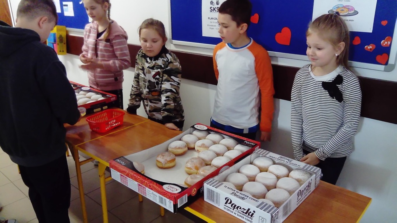 Tłusty czwartek By tradycji stało się zadość, uczniowie klasy II i III pod opieką swojej wychowawczyni pani Małgorzaty Padyjasek sprzedawali słodkie pączki. Zarobione pieniądze zostaną przeznaczone na potrzeby klasy. Dziękujemy za słodki czwartek! Zdjęcia Zobacz również Poczta walentynkowa Karnawał trwa.... Zaproszenie na Dzień Otwarty Tłusty czwartek Walentynkowy zawrót głowy Językoznawcze Forum Dyskusyjne 22 lutego 2020 Aktualności Wydrukuj Udostępnij Wyświetlono: 249