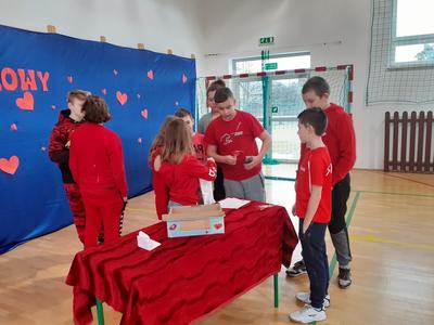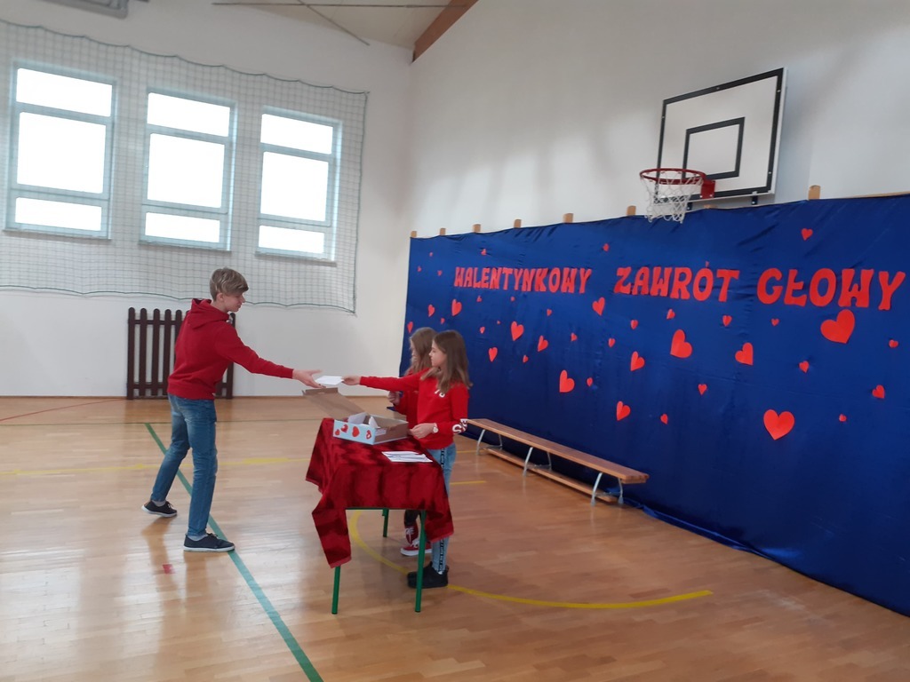 Z okazji walentynek w naszej szkole funkcjonowała poczta walentynkowa. Tego dnia wszyscy uczniowie mający czerwone elementy ubiory zebrali się w sali gimnastycznej, by odebrać od SU adresowane do siebie kartki.