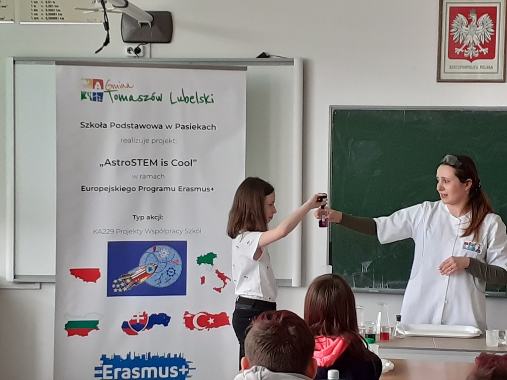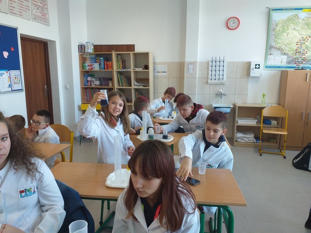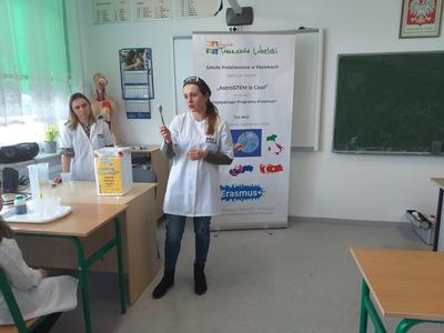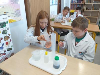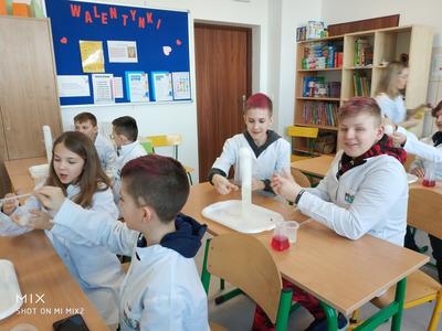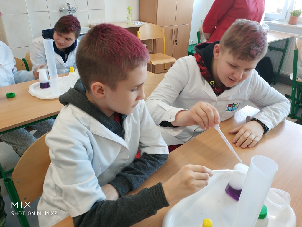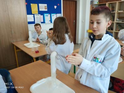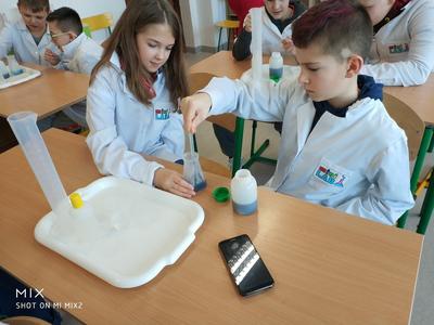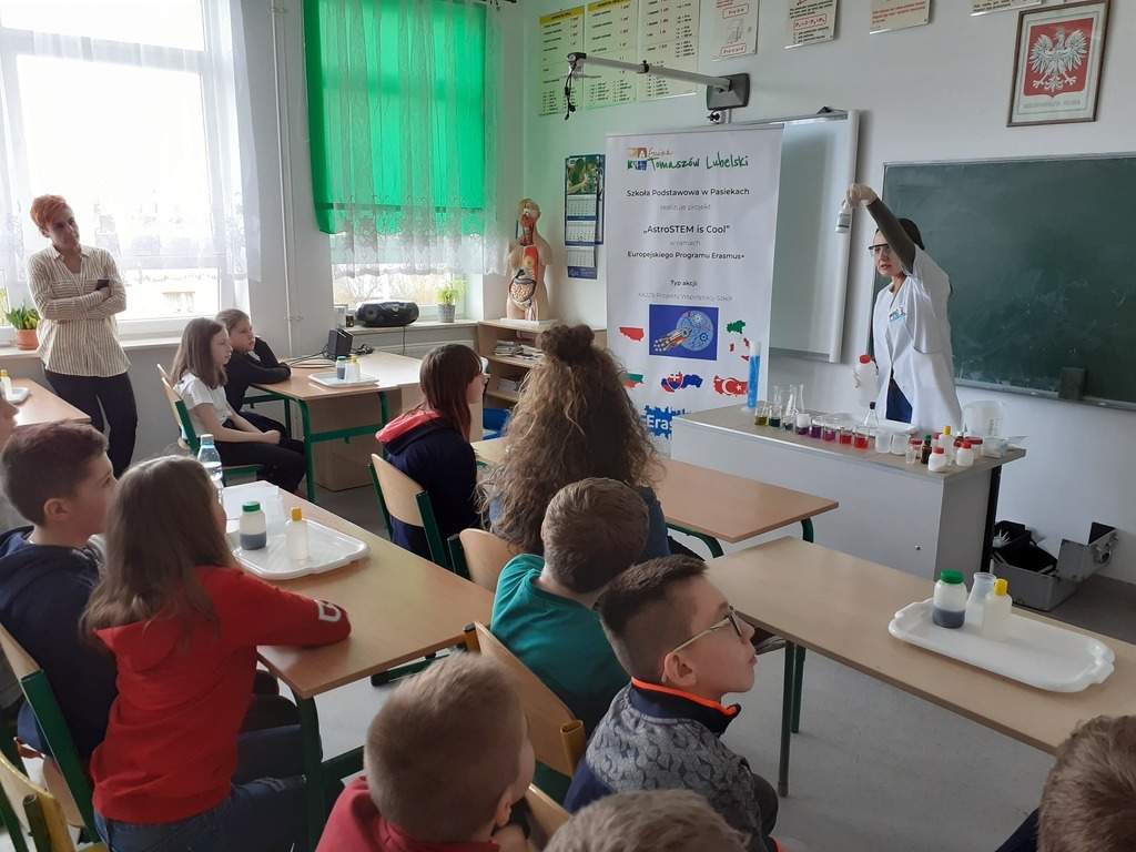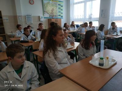 W ramach akcji w szkole odbyły się profesjonalnie przeprowadzone pokazy fizyczno-chemiczne, które wzbudziły w uczniach niemałe emocje. Były więc i kontrolowane wybuchy, i substancje zmieniające kolor wody. W części warsztatowej uczniowie m.in. badali właściwości suchego lodu.