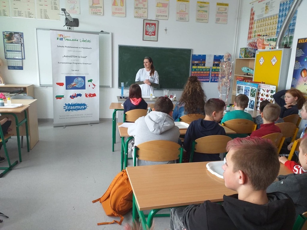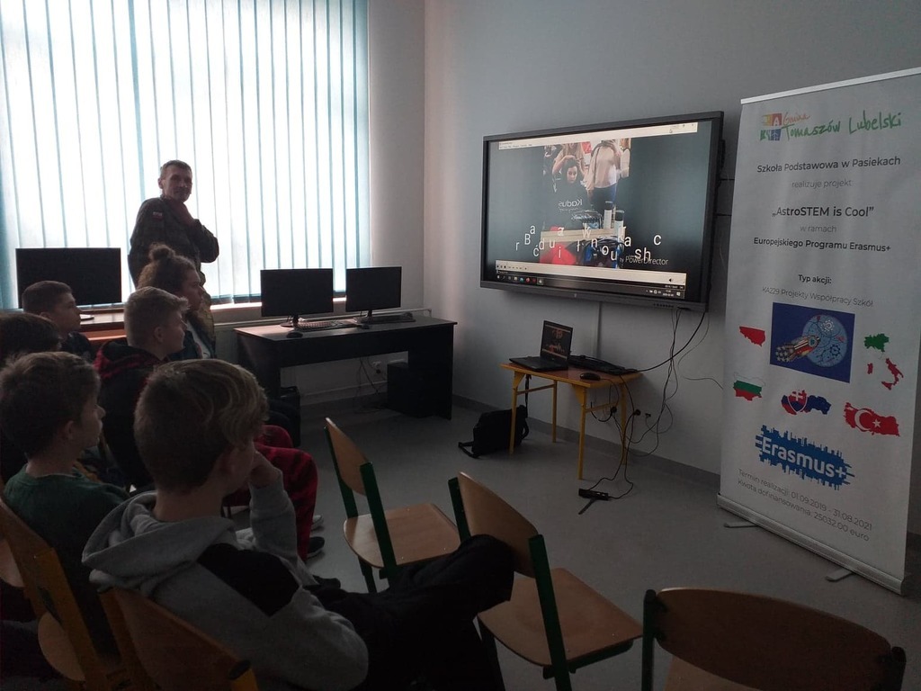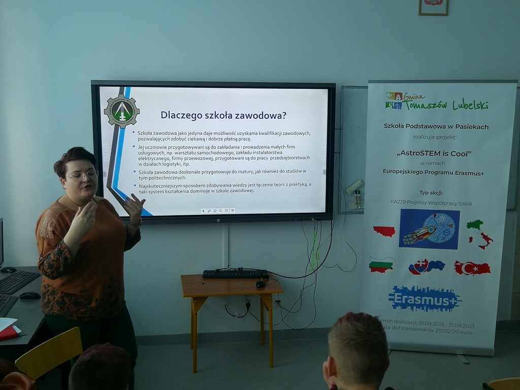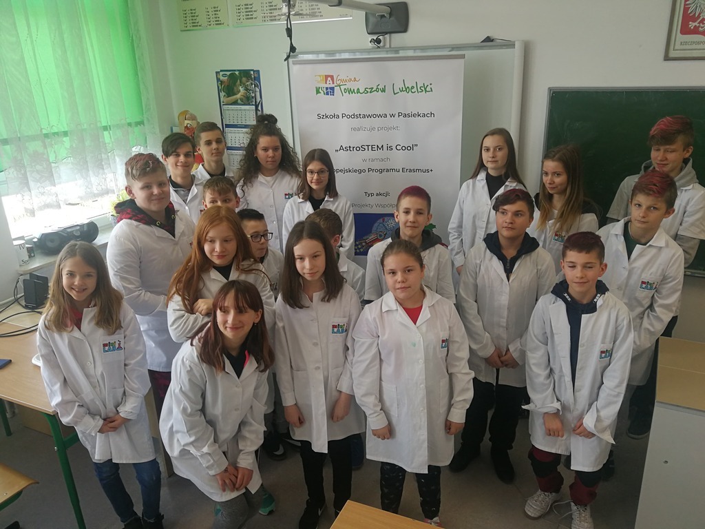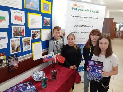 W dniu 03.03.2020 roku obchodziliśmy w naszej szkole "Dzień Erasmusa", którego celem była promocja międzynarodowego projektu edukacyjnego i pokazanie jego dotychczasowych rezultatów. Uczniowie realizujący projekt "AstroSTEM is COOL" mieli możliwość poznania zawodów ściśle związanych z naukami matematyczno-fizycznymi. Przy udziale zaproszonych gości nasi uczniowie zaprezentowali dotychczasowy dorobek, w skład którego weszły materiały wywieszone na gazetce ściennej, galeria fotografii, ulotki oraz gadżety reklamowe, które trafiły do naszych gości i odwiedzających.