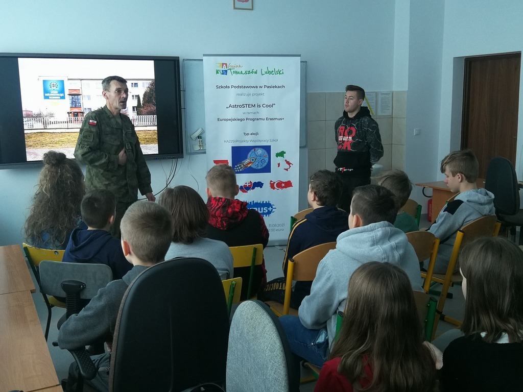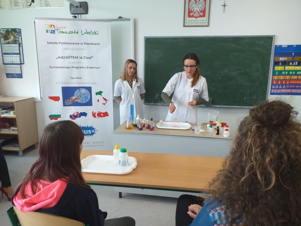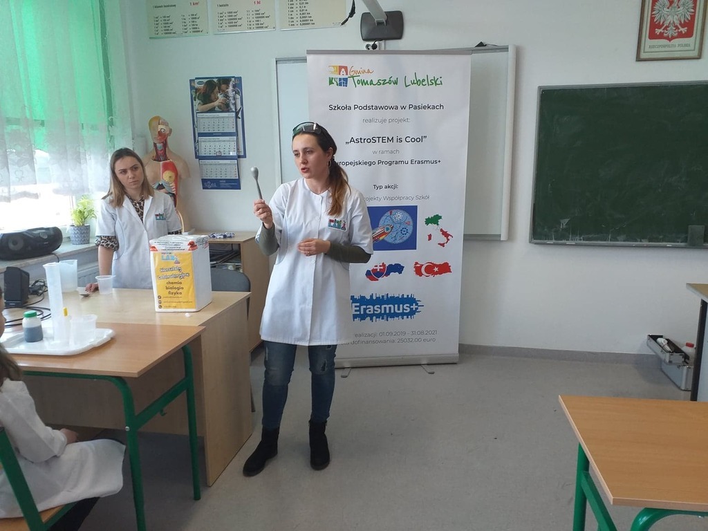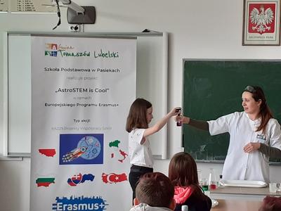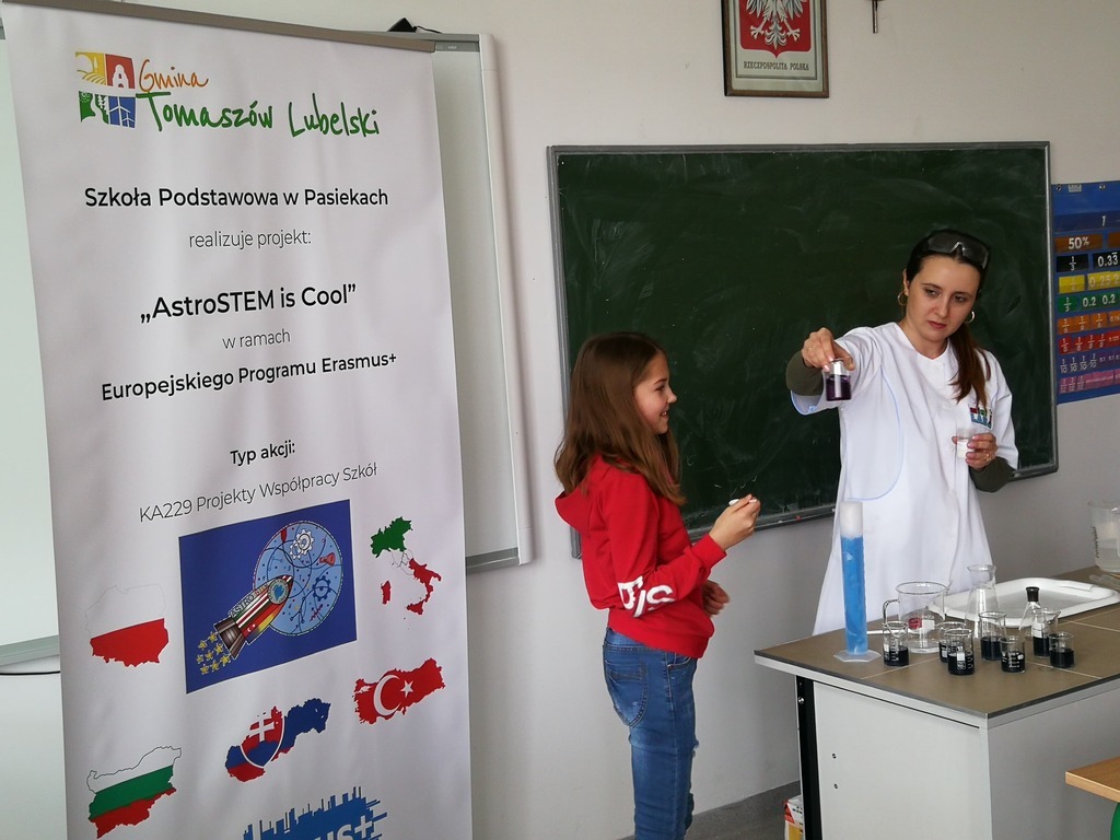 W dniu 03.03.2020 roku obchodziliśmy w naszej szkole "Dzień Erasmusa", którego celem była promocja międzynarodowego projektu edukacyjnego i pokazanie jego dotychczasowych rezultatów. Uczniowie realizujący projekt "AstroSTEM is COOL" mieli możliwość poznania zawodów ściśle związanych z naukami matematyczno-fizycznymi. Przy udziale zaproszonych gości nasi uczniowie zaprezentowali dotychczasowy dorobek, w skład którego weszły materiały wywieszone na gazetce ściennej, galeria fotografii, ulotki oraz gadżety reklamowe, które trafiły do naszych gości i odwiedzających.