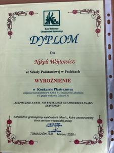 Nikola Wójtowicz z kl. 0 otrzymała wyróżnienie i nagrody rzeczowe.