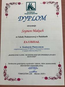 Łukasz Ścirka i Szymon Makuch z kl 3 otrzymali dyplomy za udział w konkursie.