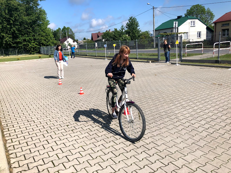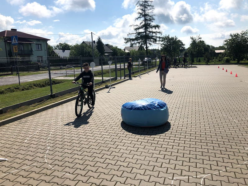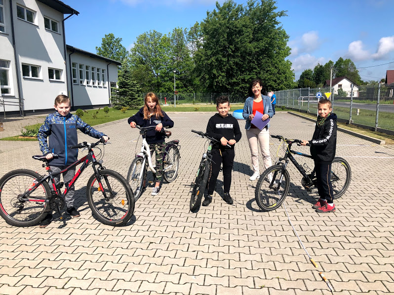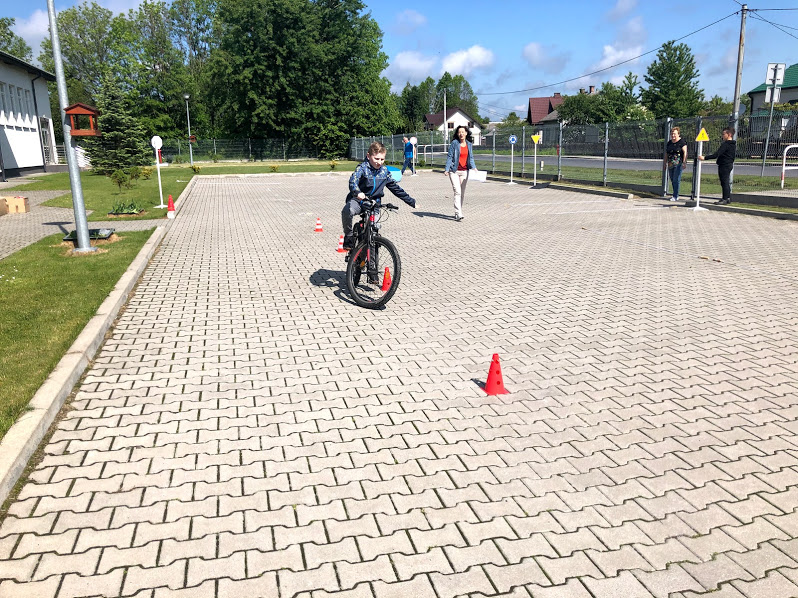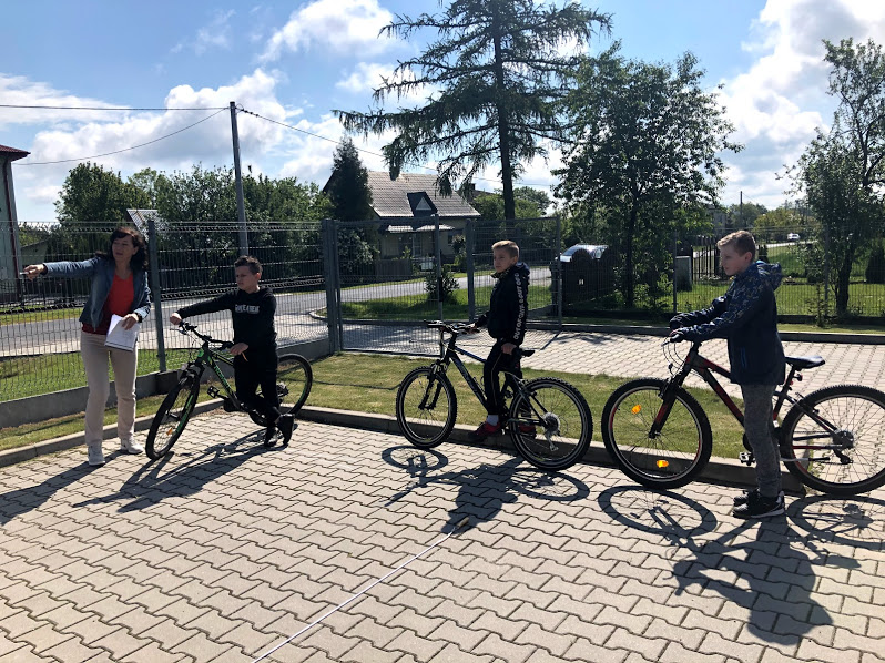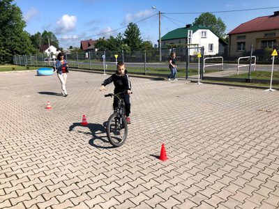 Dziś w ramach konsultacji z techniki uczniowie klas IV - V zaliczyli egzamin praktyczny na kartę rowerową. Wszyscy przyjechali swoimi sprawnymi rowerami. Po jeździe próbnej wykonali następujące zadania egzaminacyjne: ruszanie z miejsca, jazdę do przodu i po łukach, hamowanie i zatrzymywanie pojazdu, jazdę w ruchu okrężnym, slalom. Dodatkowo uczniowie właściwie reagowali na znaki i sygnały drogowe . Wszystkie zadania wykonali bez pomyłek.