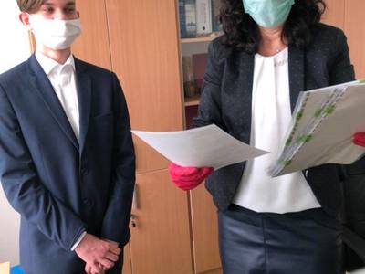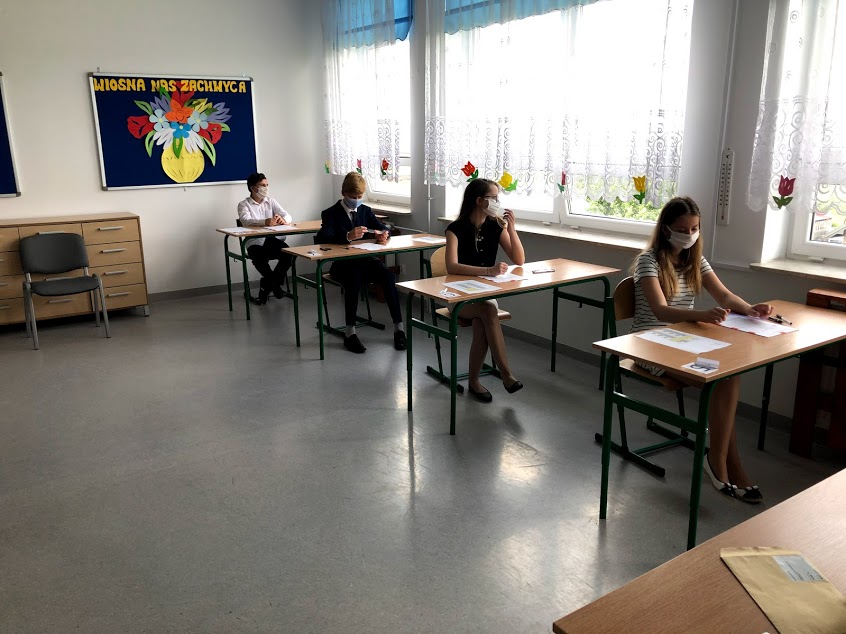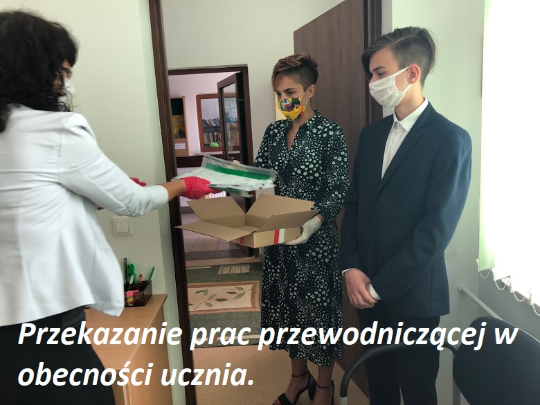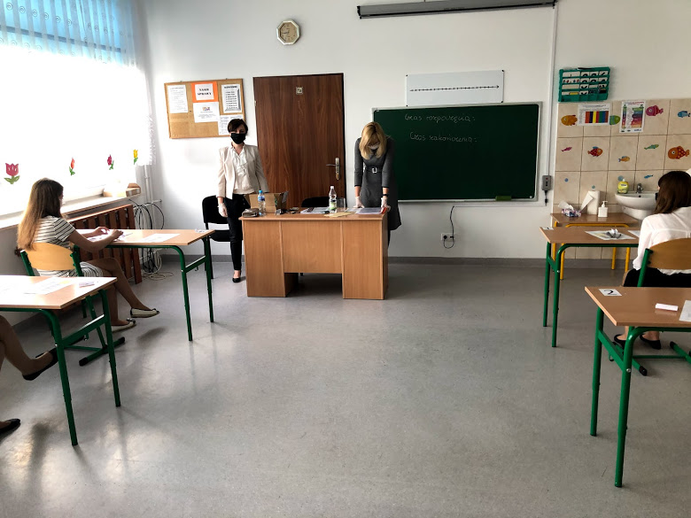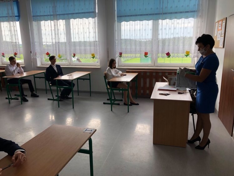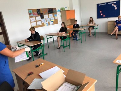 Wcześniej przewodnicząca ZN Pani A. Gozdek w obecności jednego z uczniów zgodnie z procedurą odebrała z gabinetu dyrektora arkusze egzaminacyjne.