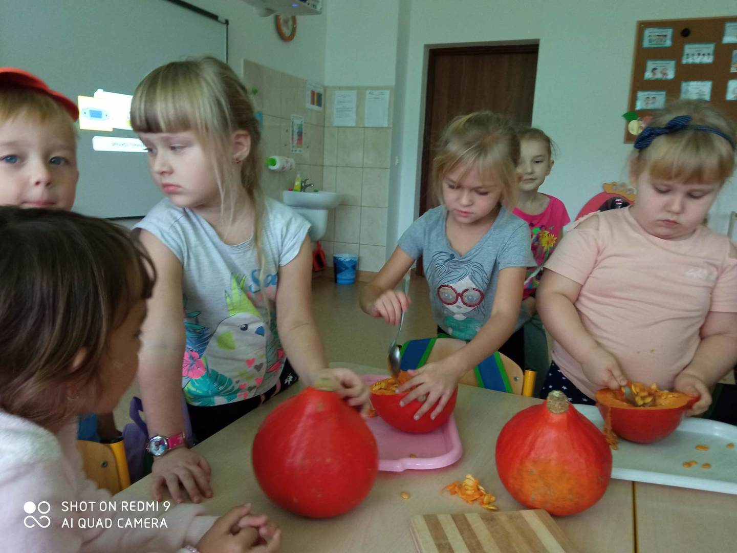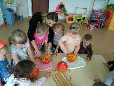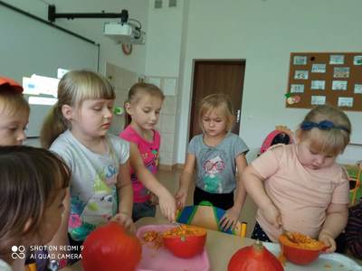 30 października 2020 przedszkolaki obchodziły Dzień Dyni. Dzieci nauczyły się śpiewać piosenkę o dyni w języku angielskim. Poznały słownictwo związane z tym świętem. Były też zabawy w kole z dynią w roli głównej i dyniowe przebieranki. Każdy mógł zobaczyć, dotknąć, powąchać i sprawdzić ile ważą dynie. Te multisensoryczne zajęcia zakończyły się degustacją pieczonej dyni. Niektórym smak dyni bardzo przypadł do gustu, innym troszkę mniej. Niemniej jednak był to dzień pełen niezapomnianych, dyniowych wrażeń.