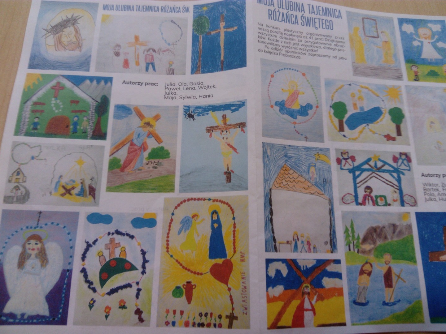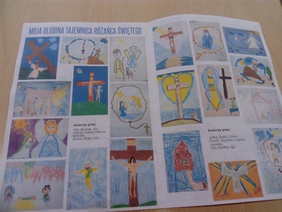 Parafia Świętego Józefa w Tomaszowie Lubelskim ogłosiła konkurs na wykonanie pracy plastycznej pt. "Moja ulubiona tajemnica różańca świętego". 6 latki z naszej szkoły pod opieką p. E. Korgi wykonały przepiękne prace, które zostały zamieszczone w gazetce parafialnej "Oblubieniec". Za wykonane prace dzieci otrzymały ciekawe nagrody. Brawo!