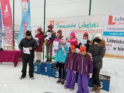 , wspierany przez Gminę Tomaszów Lubelski i naszą Szkołę. W tym roku w zawodach wzięło udział 50 osób: 11 seniorów oraz 39 juniorów i dzieci. Najstarszy zawodnik ma 70 lat, a najmłodsza zawodniczka prawie 6 lat. Startujący zawodnicy pochodzą z Tomaszowa Lubelskiego, Łosińca, Pasiek, Zamościa, Lublina i Kielc. Naszą szkołę godnie reprezentowała uczennica klasy 4 Karolina Maciejko.![]()