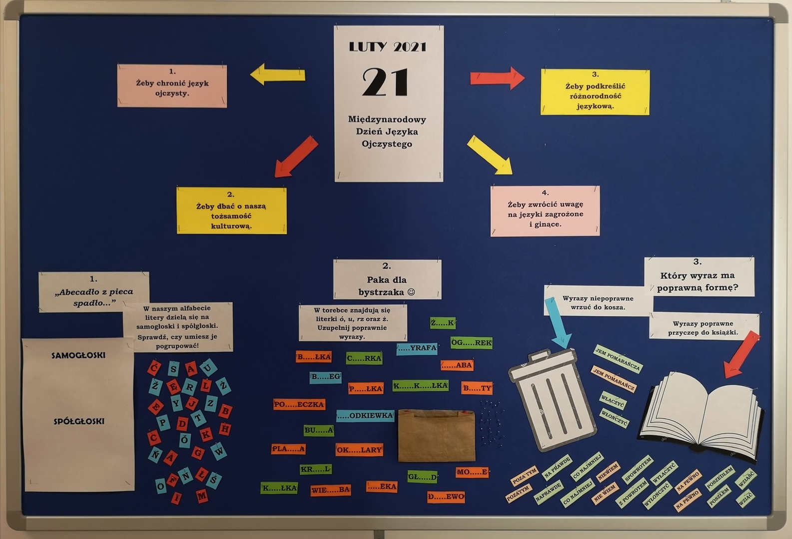 Dzisiaj jest wyjątkowy dzień. Świętujemy Międzynarodowy Dzień Języka Ojczystego, który przypomina o bogactwie różnorodności językowej i podkreśla jego wartość dla rozwoju dziedzictwa kulturowego ludzkości. Przesłaniem święta jest ochrona języków ojczystych, promowanie wielojęzyczności i podkreślanie wartości edukacji językowej. W naszej szkole o tym wyjątkowo ważnym dniu przypomina gazetka ścienna.