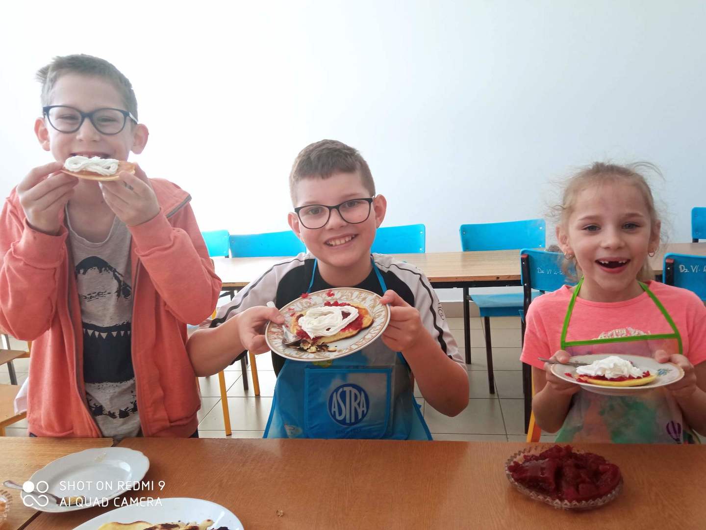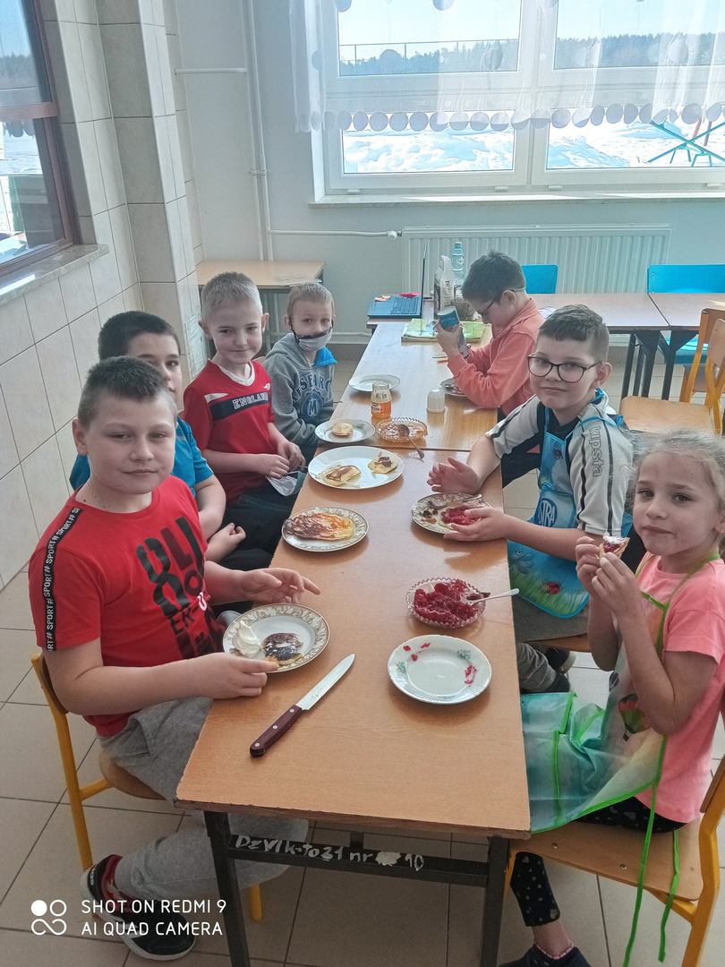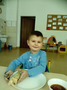 16 lutego 2021 obchodziliśmy w naszej szkole i przedszkolu Dzień Naleśnika (Pancake Day). Dzień naleśnika to nic innego jak angielski odpowiednik polskiego Tłustego Czwartku. Powiązanie naleśników z dniem poprzedzającym Wielki Post ściśle wynika z tradycji, ponieważ naleśniki były sposobem na wykorzystanie wszelkich zapasów wartościowych produktów takich jak jaja, mleko, mąka, cukier które to były zakazane w czasie 40 dniowego postu. Dla naszych uczniów była to nie tylko lekcja kulturowa ale także nauka słownictwa i warsztaty kulinarne, na których sami przygotowywali ciasto. Sami też wybierali co znajdzie się na ich naleśniku. Były też gry językowe z podrzucaniem plastikowych "naleśników" w roli głównej a także "naleśnikowe" rymowanki i piosenki. Dużo się działo i jeszcze było pysznie!