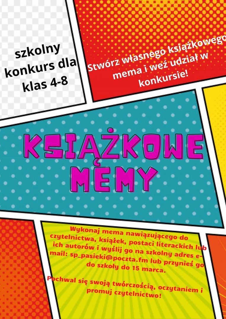 Konkurs "Książkowe Memy" Zapraszamy uczniów klas IV-VIII z naszej szkoły do udziału w konkursie promującym czytelnictwo. Informacje na plakacie. Zdjęcia Zobacz również Pancake Day 2021 Dzień Bezpiecznego Internetu Próbny egzamin klas ósmych Konkurs "Książkowe Memy" Dzień Kobiet "Słodkie babeczki dla każdej babeczki" 04 marca 2021 Aktualności Wydrukuj Udostępnij Wyświetlono: 179