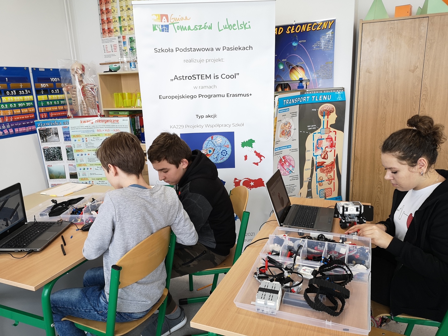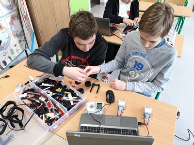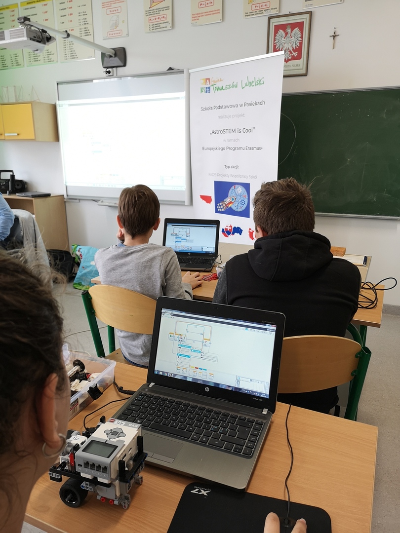 W ramach trwającego projektu Erasmus+ uczniowie klasy VIII uczestniczyli w warsztatach z programowania i robotyki. Była to świetna okazja do rozwijania swojej kreatywności, umiejętności logicznego myślenia oraz rozwijania myślenia przyczynowo-skutkowego.
