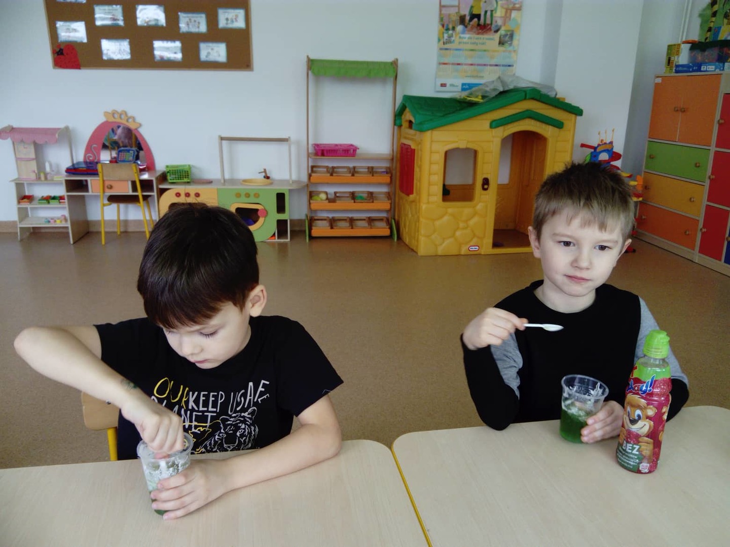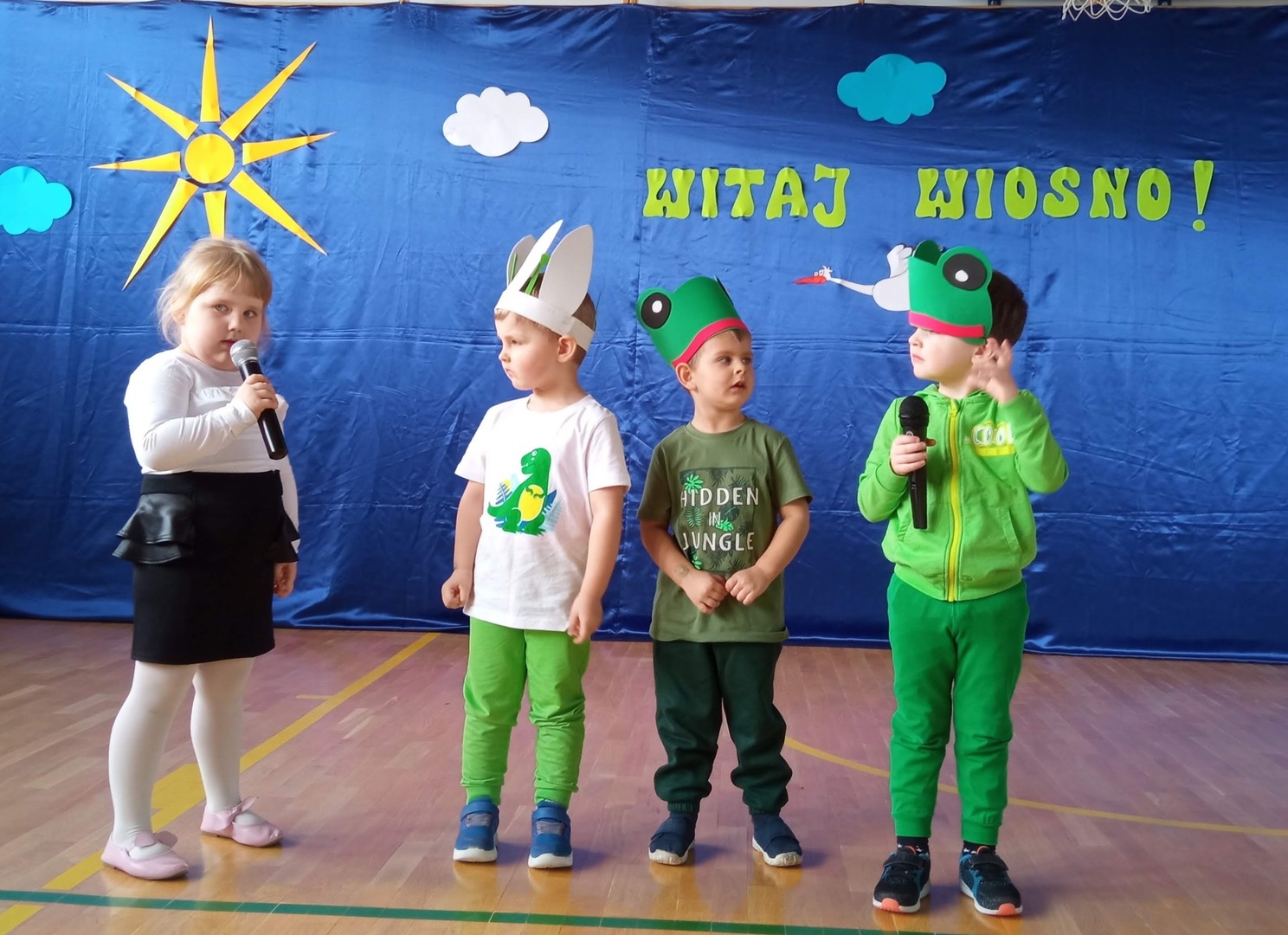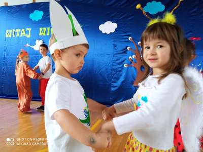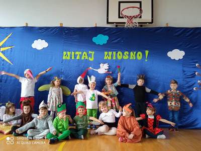 W tym roku wszyscy z niecierpliwością czekamy na początek wiosny, dlatego nasze przedszkolaki powitały Zieloną Panienkę już 19 marca. Podczas przedstawienia pt. ”Witaj wiosno”, każdy miał okazję wyrecytować powitalne słowa oraz wyśpiewać piosenkę "Maszeruje wiosna". Uwieńczeniem występu był "Wiosenny walczyk", brawurowo zatańczony przez naszych małych tancerzy. Po udanym przedstawieniu nie zabrakło zielonych galaretek, które smakowały wyjątkowo. Po takim powitaniu wiosna z pewnością nie da się dłużej prosić i niedługo do nas zawita.