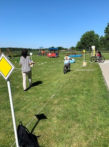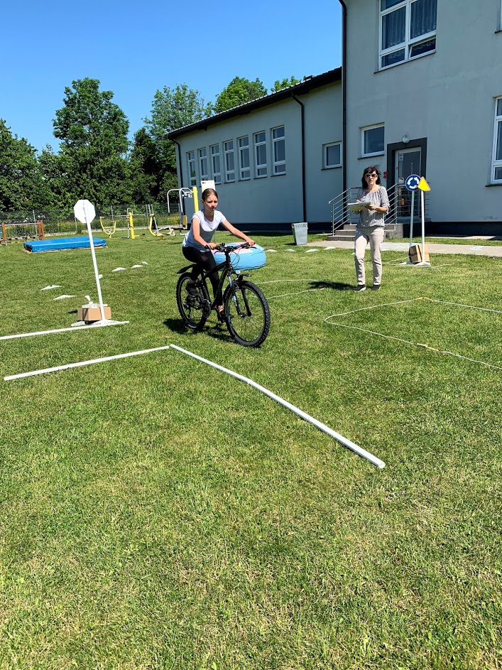 Uczniowie ćwiczyli włączanie się do ruchu, skręcanie w lewo, pokonali rondo, slalom i zatrzymywanie się przed przejściem.