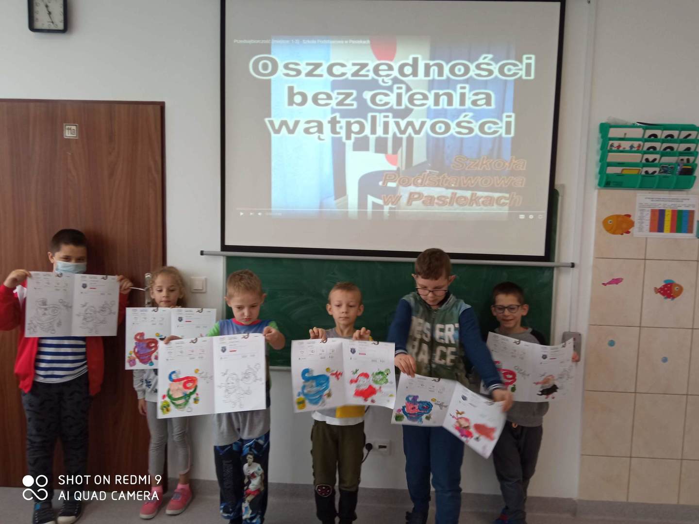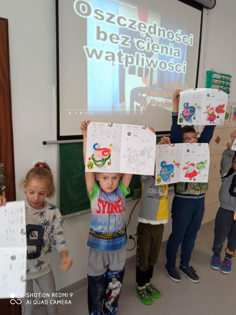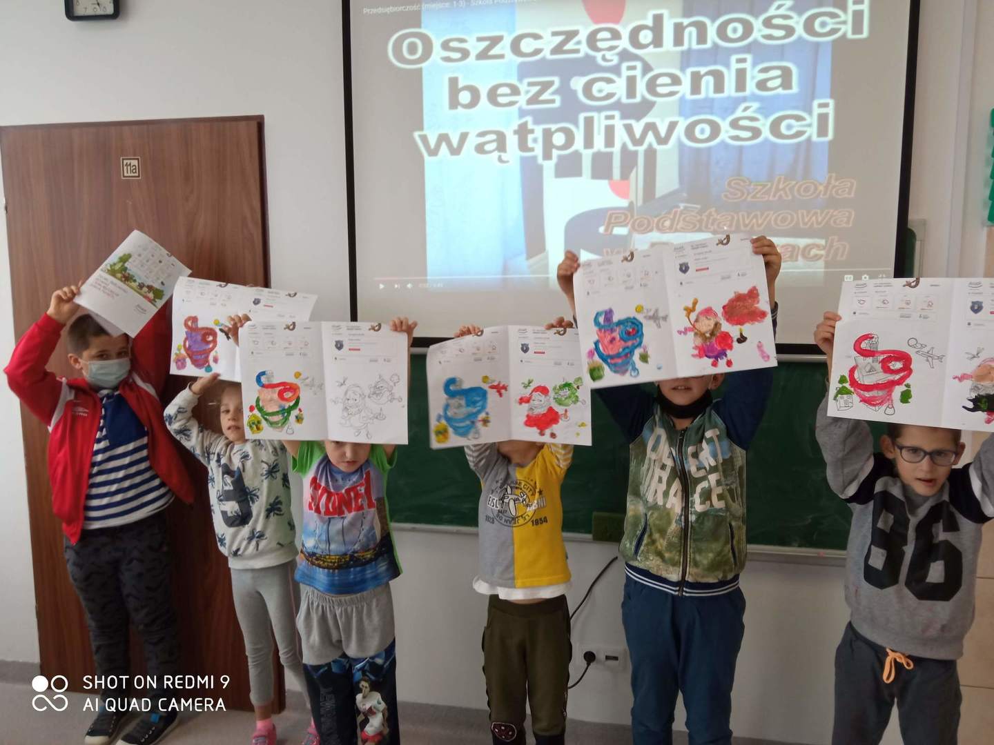 Mali Skowicze z klasy II i III obejrzeli filmik przygotowany przez uczniów naszej szkoły w latach ubiegłych "Oszczędności bez cienia wątpliwości." Rozwiązywali rebusy, krzyżówki i zagadki na temat oszczędzania, zastanawiali się jak samodzielnie mogą powiększyć stan swojego konta oszczędnościowego i na co przeznaczą zaoszczędzone pieniądze. Taka lekcja oszczędności to doskonały sposób na uczczenie obchodów Światowego Dnia Oszczędzania, które już na stałe wpisały się w kalendarz naszych szkolnych uroczystości.
