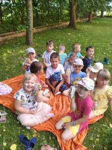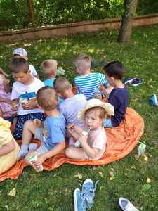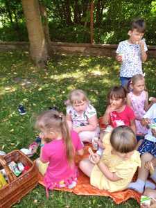 Rok szkolny 2020/2021 powoli dobiega końca. Ostatnie dni nauki przedszkolaki poświęcają na aktywne spędzanie czasu na świeżym powietrzu. W dniu 21 czerwca 2021r. wybraliśmy się do pobliskiego kościoła pod wezwaniem Narodzenia Najświętszej Maryi Panny w Pasiekach, gdzie wspólnie pomodliliśmy się i zaśpiewaliśmy piosenkę "Sercem kocham Jezusa". Korzystając ze słonecznej pogody radośnie bawiliśmy się, słuchaliśmy śpiewu ptaków i szukaliśmy pięknych polnych kwiatów. Na zakończenie urządziliśmy piknik wśród szumu drzew.