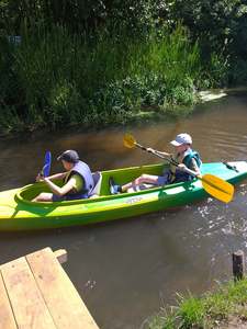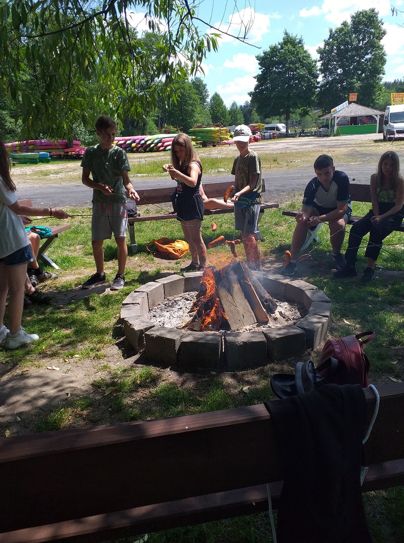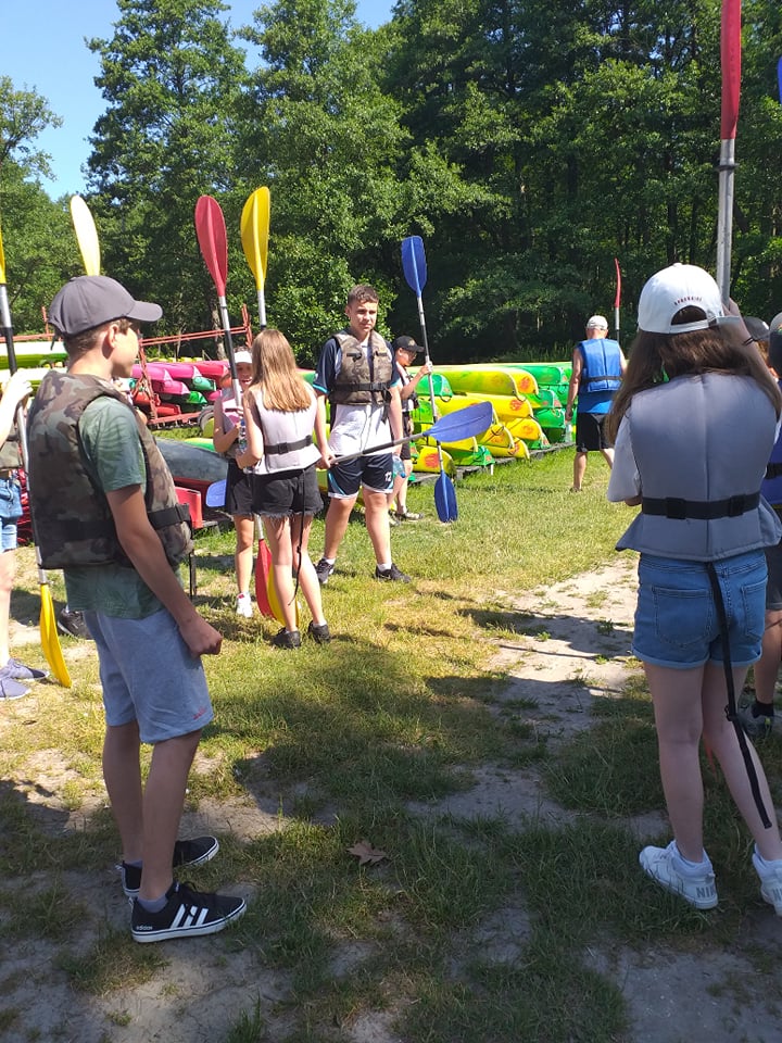Korzystając z upalnej pogody i ostatnich dni w szkole, uczniowie klas starszych wybrali się na spływ kajakowy trasą Obrocz- Zwierzyniec. Po udanym splywie był czas na wspólne ognisko, a w drodze powrotnej na lody w niedalekim Krasnobrodzie.