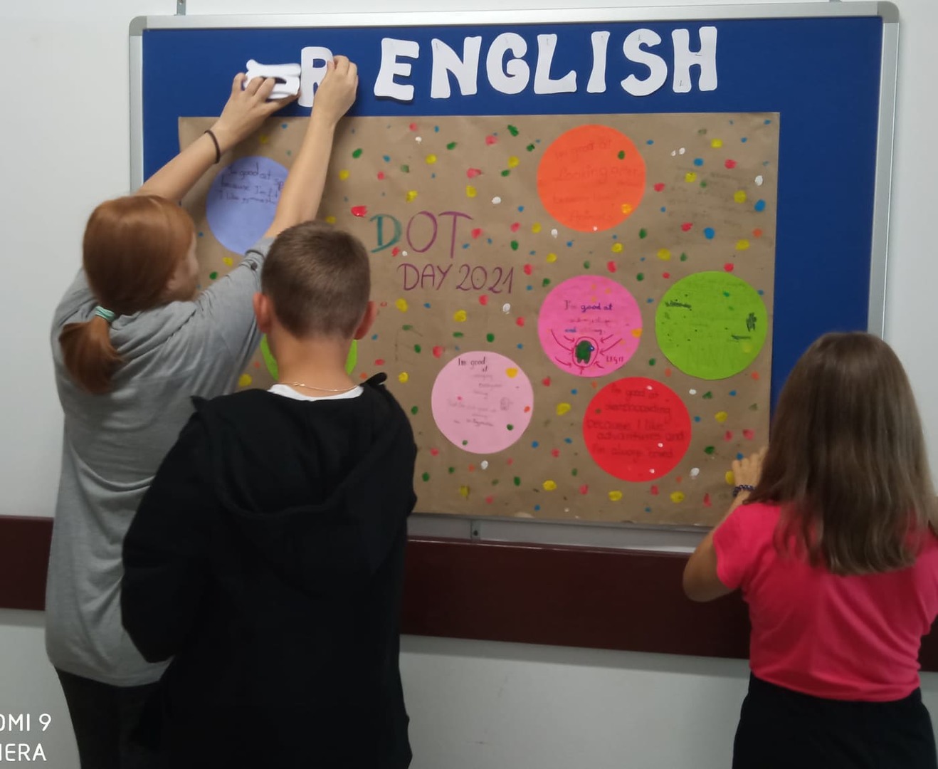 W naszej szkole i przedszkolu tego dnia powstały wyjątkowe i niepowtarzalne kropkowe dzieła sztuki. Na różnych przedmiotach uczniowie rozwijali kreatywne myślenie i poznawali ciekawe sposoby zdobywania wiedzy, a motywem przewodnim wielu lekcji była oczywiście kropka. Obchody International Dot Day to wspaniały czas do porozmawiania z dziećmi na temat ich talentów i zaprezentowania ich światu, bo każdy z nas ma w sobie jakiś ukryty talent.