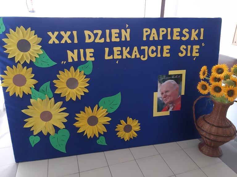 W dniu 20 października 2021r. w naszej szkole odbyła się uroczysta akademia z okazji XXI Dnia Papieskiego pod hasłem – „Nie lękajcie się”. Uczniowie klasy VII wraz z nauczycielami zaprezentowali montaż słowno-muzyczny ukazujący osobę św. Jana Pawła II . Kolejny Dzień Papieski był okazją do przypomnienia osoby, nauczania i dorobku naszego kochanego Jana Pawła II. Mieliśmy okazję wspomnieć jak wielką postacią dla całego świata stał się Karol Wojtyła. Uczniowie obejrzeli również krótki film przedstawiający jego drogę do pontyfikatu. Uczciliśmy ten dzień wspólnym odśpiewaniem ulubionej pieśni Jana Pawła II „Barka”.
