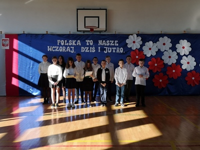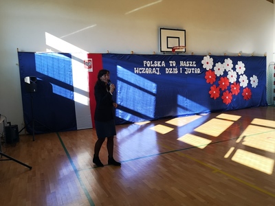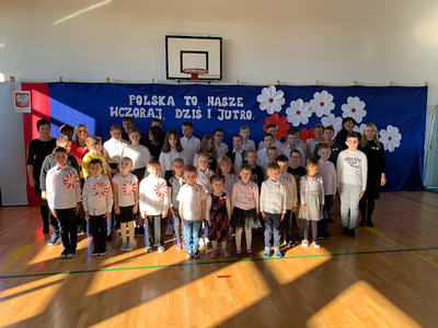 Święto Odzyskania przez Polskę Niepodległości to jedno z najważniejszych świąt dla każdego Polaka. I my, w swojej szkolnej społeczności, postanowiliśmy uczcić ten wyjątkowy dzień. Rozpoczęliśmy od wspólnego odśpiewania hymnu w ramach akcji "Szkoła do hymnu" zorganizowanej przez Ministerstwo Edukacji i Nauki. Następnie uczniowie pod kierunkiem Pani Iwony Krupy przedstawili montaż słowno-muzyczny, który wprowadził nas w klimat 1918 roku.