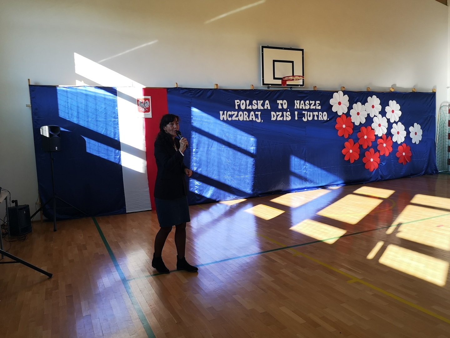 Na zakończenie uroczystego apelu Pani Dyrektor Ewa Probola podziękowała uczniom oraz Pani Iwonie za piękne przygotowanie montażu.