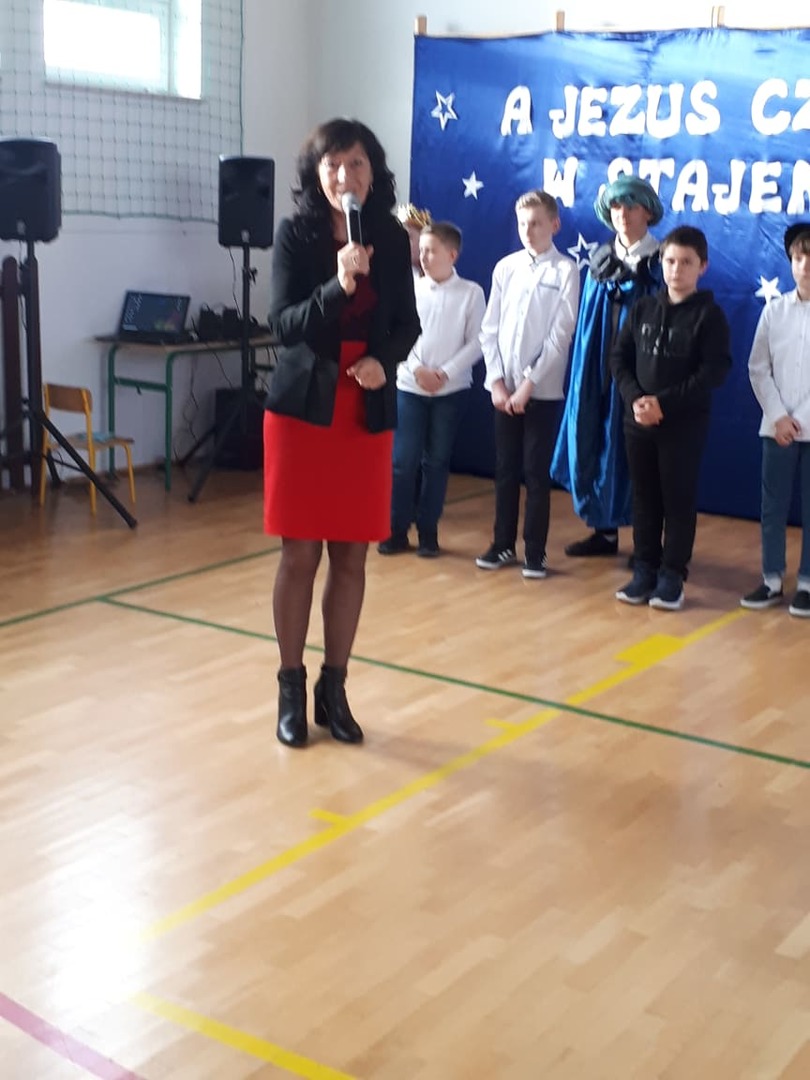 Na zakończenie Pan dyrektor Ewa Probola podziękowała artystom za przygotowanie wyjątkowych jasełek, a także złożyła świąteczne życzenia uczniom, nauczycielom i wszystkim pracownikom szkoły.