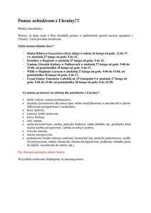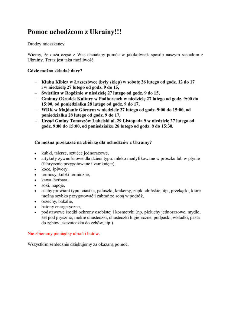 Pomoc dla uchodźców Apel Pani Wójt Marzeny Czubhaj-Gancarz dotyczący pomocy dla uchodźców z Ukrainy. Zdjęcia Zobacz również Informacja dla rodziców i uczniów Książka poleca się na ferie! Rekrutacja czas start! Pomoc dla uchodźców Przekazanie darów Każda okazja jest dobra... czyli nietypowy Dzień... 26 lutego 2022 Aktualności Wydrukuj Udostępnij Wyświetlono: 114