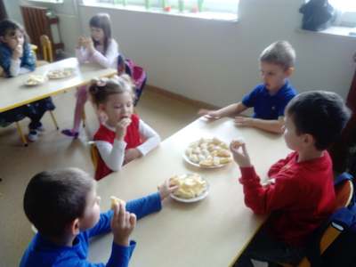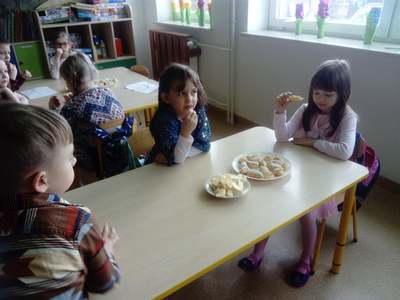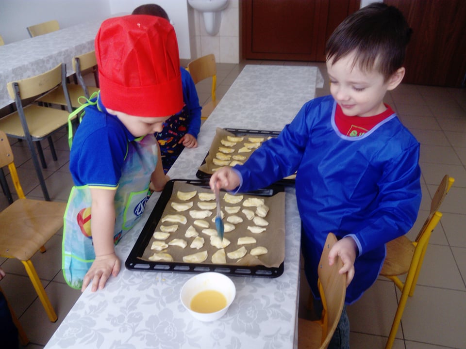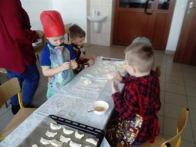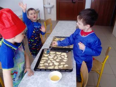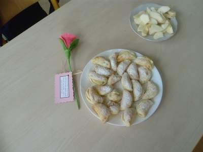 Sporo działo się również w przedszkolu. Tam, nasi mali dżentelemni postanowili osłodzić ten wyjątkowy dzień swoim koleżankom. Pod okiem nauczycieli, upielki pyszne ciasteczka o wdzięcznej nazwie "Całuski". Wyszło pysznie!